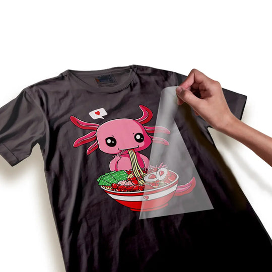 Machine wash cold, tumble dry low. Turn garment inside out before washing to preserve your ready to press DTF transfers designs and maintain the axolotl's adorable anime features. Learn about compatible fabrics for DTF transfers for best results.