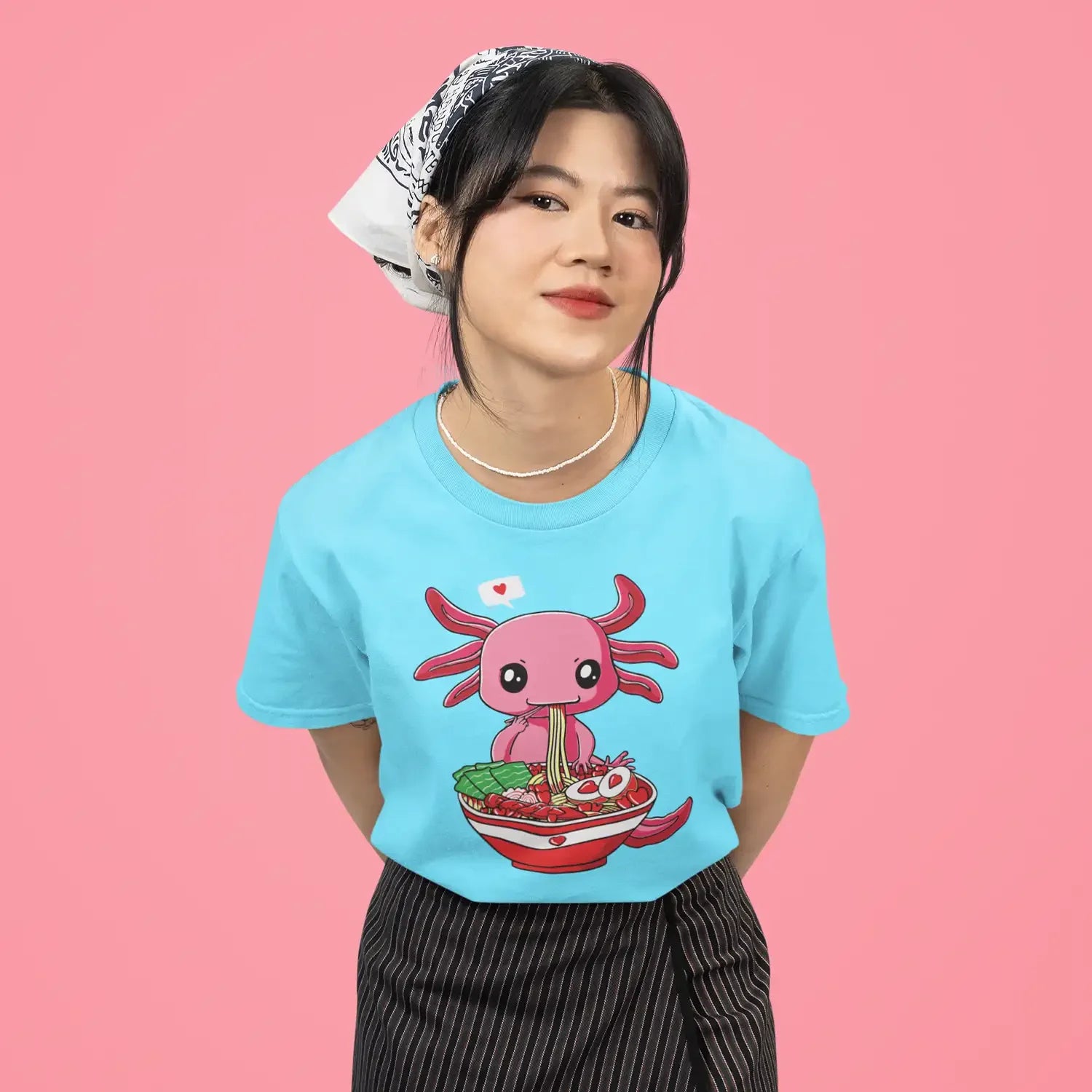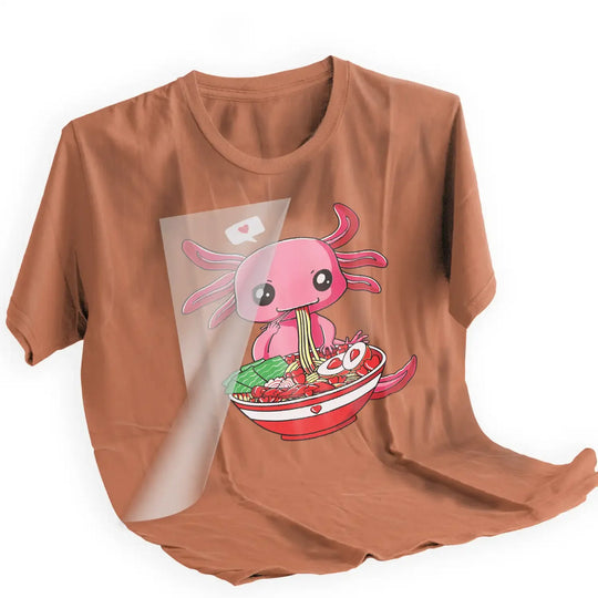 - High-quality DTF transfer for t-shirt with pastel colors and anime-style axolotl illustration