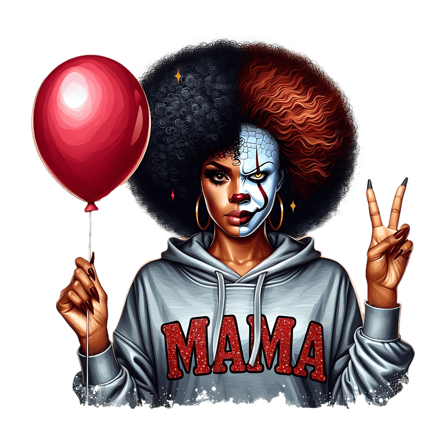 Black Horror Mama - Mama Pennywise - DTF Transfer - Direct-to-Film
