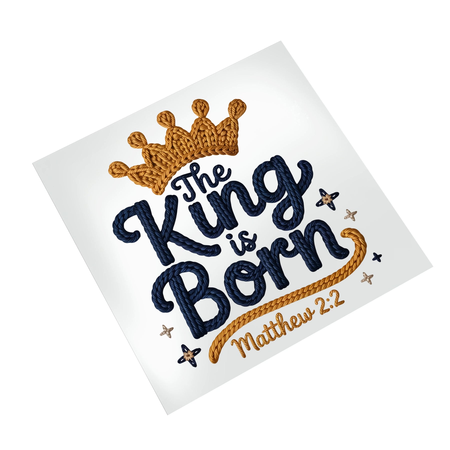 Celebrate the true meaning of Christmas with this beautiful "The King is Born" DTF transfer featuring an elegant rope-textured design. Perfect for creating meaningful holiday apparel that honors the birth of Jesus Christ.