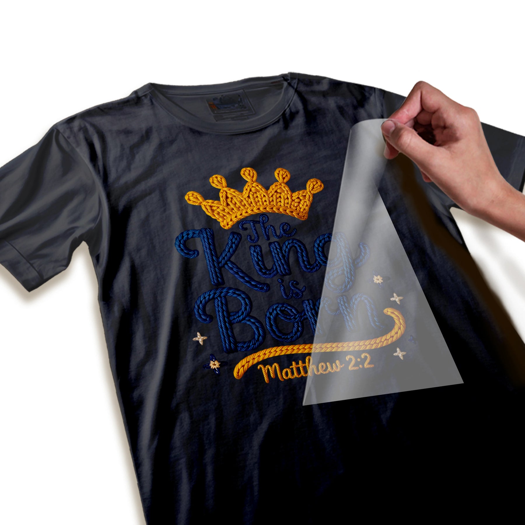 Create meaningful Christmas apparel that celebrates the reason for the season with this stunning "The King is Born" DTF transfer design!