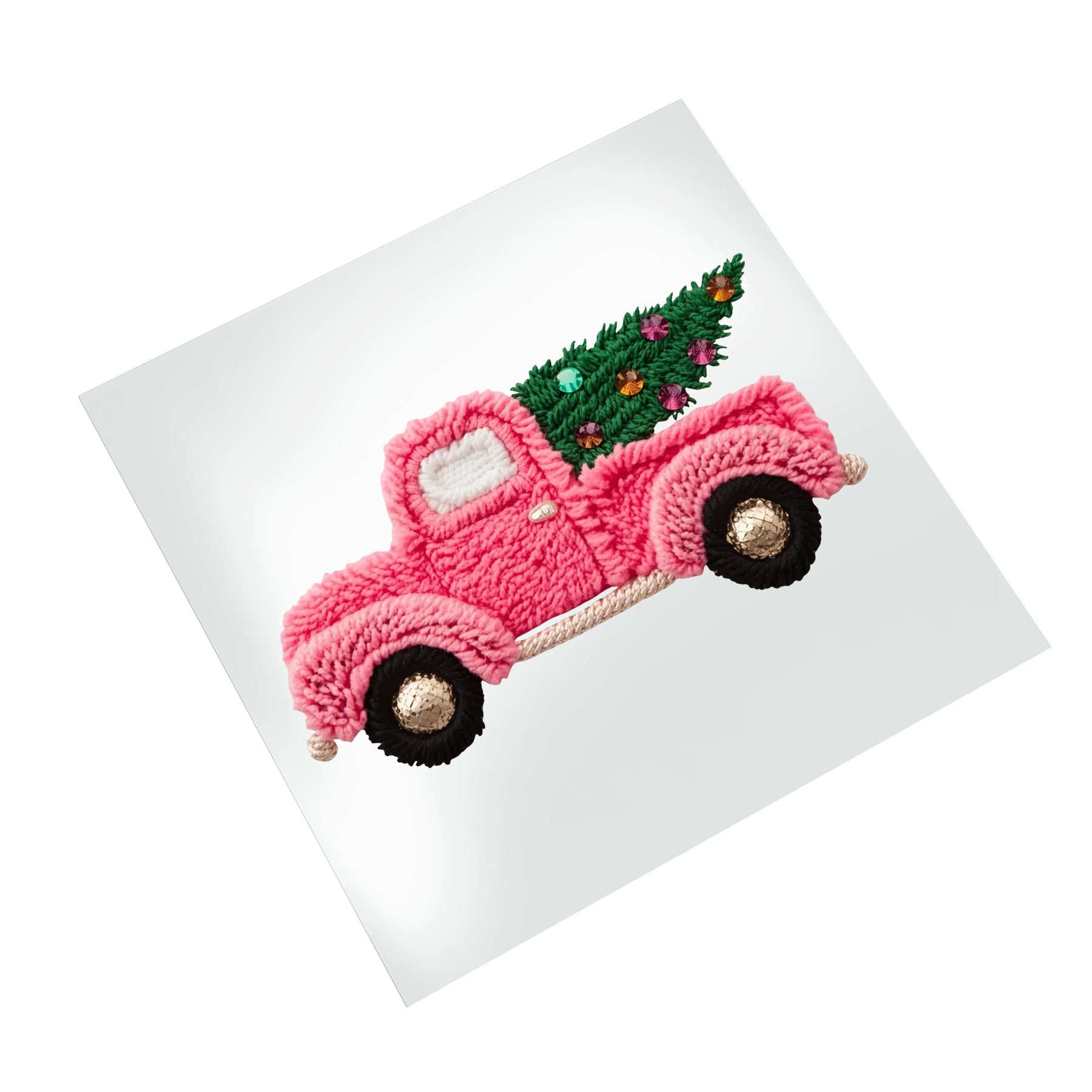 Christmas DTF Transfer - Faux Yarn Pink Truck Christmas Tree Ready to Press