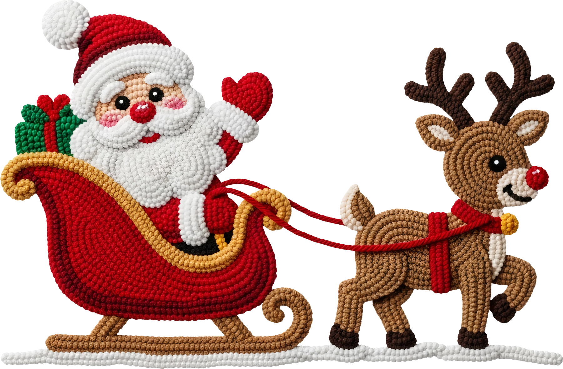 Transform your holiday apparel with this charming Christmas DTF transfer featuring jolly Santa Claus and his faithful reindeer companion in a classic sleigh scene. This professional-quality design captures the magic of Christmas with intricate embroidered-style detailing that creates a premium, textured appearance on any garment.
