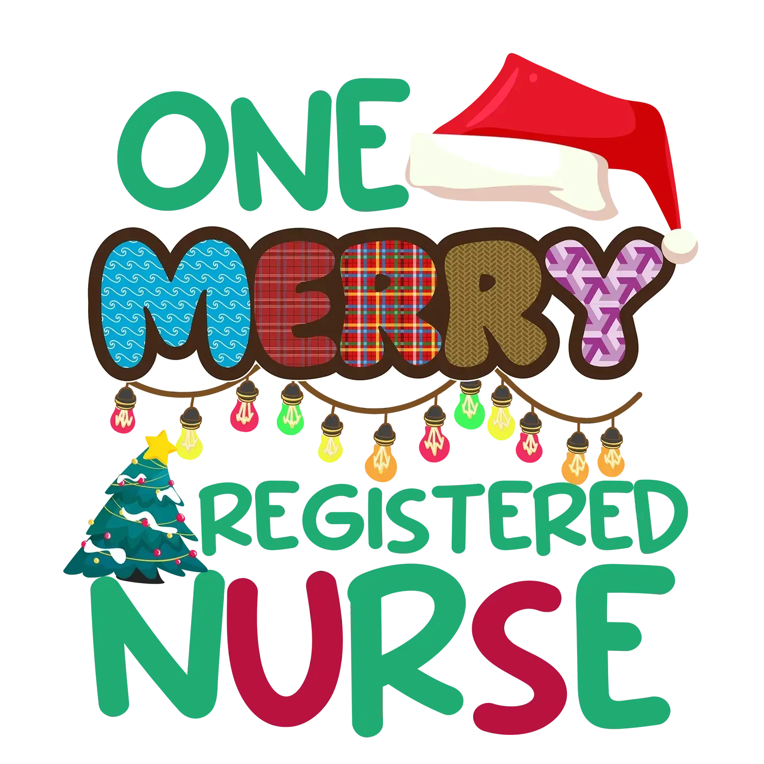 Design professional holiday nursing apparel with this DTF transfer for t-shirt application. Works wonderfully on scrubs, nursing jackets, t-shirts, hoodies, sweatshirts, and more. Perfect for registered nurses, RN graduation gifts, nursing school celebrations, Christmas nursing appreciation, or honoring BSN and MSN professionals.
