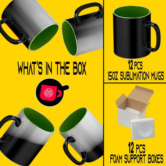 Whether you're a DIY enthusiast, a small business owner, or looking to add some magic to your kitchen, these color changing mugs are a fantastic choice. Order your set of 12 15oz Green Inner Color Changing Sublimation Mugs today and experience the enchantment!
