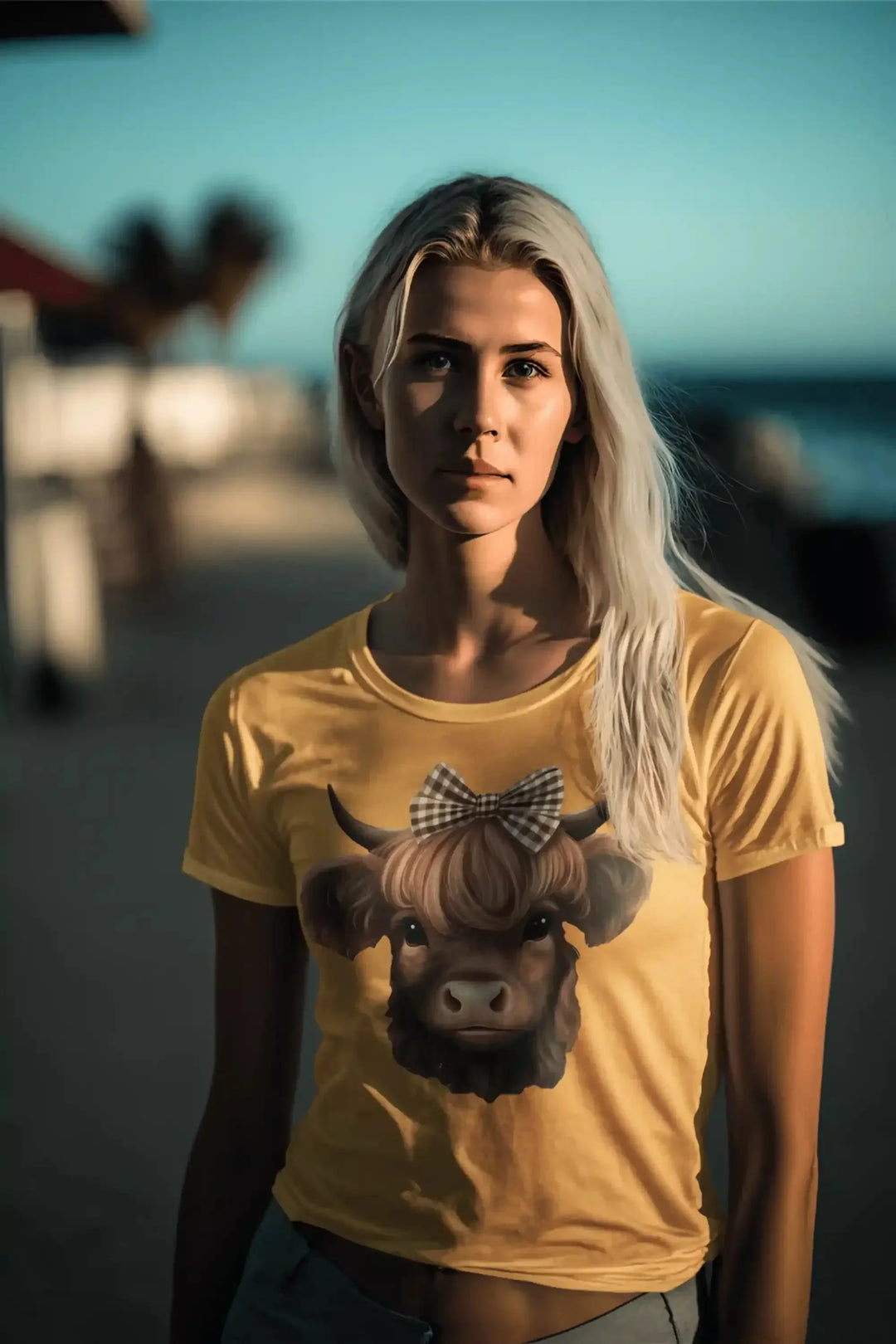 Cow Lovers | Cute Highland Cow with a Plaid Ribbon - DTF Transfer - Direct-to-Film