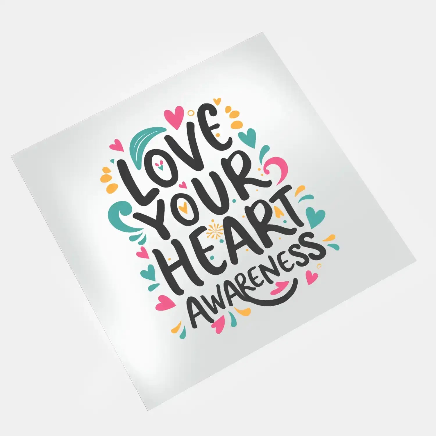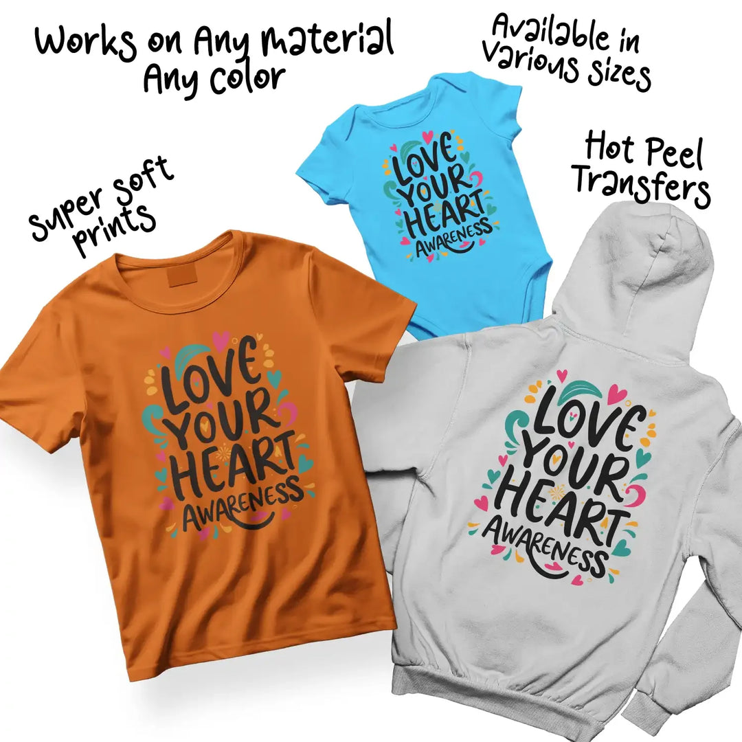Promote heart wellness with our premium "Love Your Heart" ready to press DTF transfers. Perfect for wellness advocates, self-care promotion, fitness enthusiasts, or encouraging personal cardiovascular health practices. Order your Love Your Heart DTF transfer today!