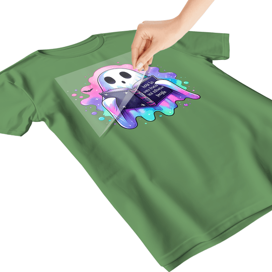 - PLACE – Position your DTF transfer on the garment with the design side DOWN (colored side touching fabric).
