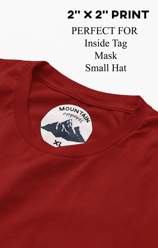 Ready to Press DTF Transfer 2x2 Inch – Perfect for small designs like neck tags and small hats. Ideal for detailed prints in tight spaces on apparel and accessories