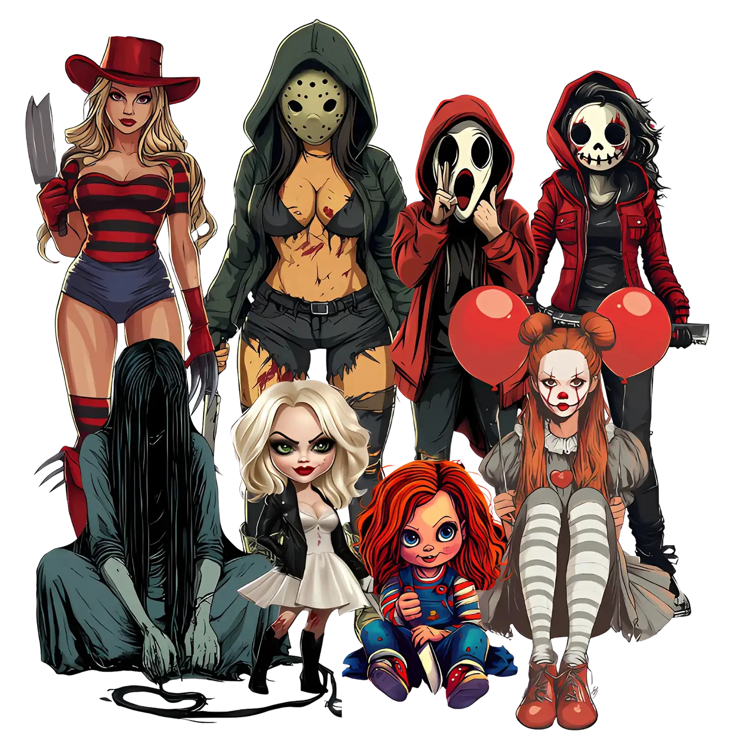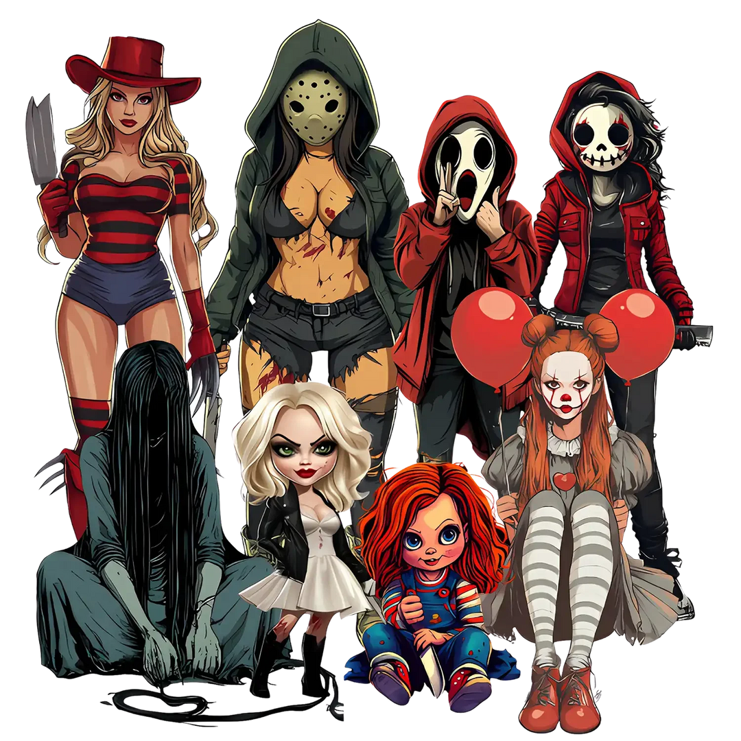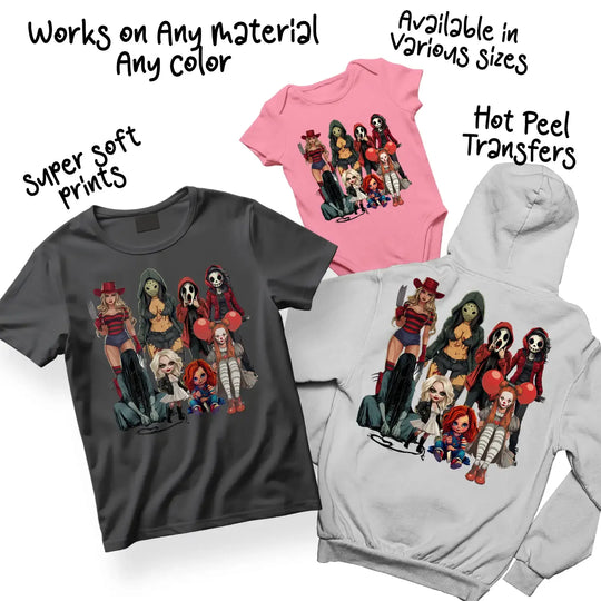 - Premium ready to press DTF transfers with Horror Gals design