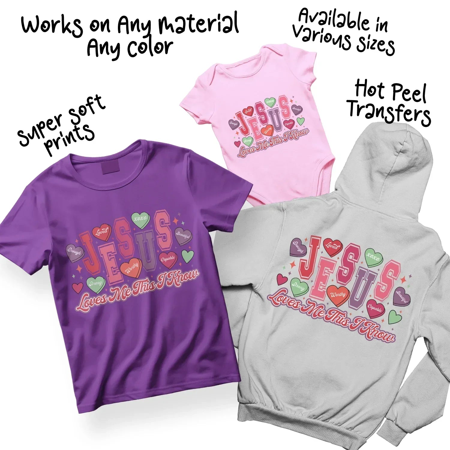 Share the timeless message of Jesus' love with our premium DTF transfer ready to press featuring "Jesus Loves Me This I Know" - the beloved hymn that touches hearts of all ages. These high-quality DTF transfers are perfect for creating meaningful Christian Valentine's gifts that celebrate faith and love.