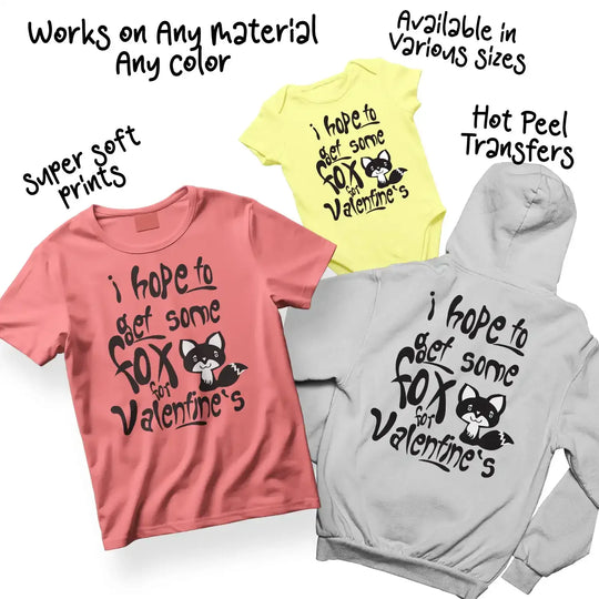 This playful and pun-filled DTF transfer ready to press features the cheeky phrase “I Hope To Get Some Fox From Valentines” alongside a clever fox design. Ideal for those who love wordplay and flirty humor!