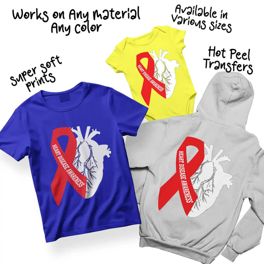 Support heart health awareness with our premium Heart Disease Awareness ready to press DTF transfers. Perfect for American Heart Month, Go Red campaigns, healthcare advocacy, or spreading vital heart health education. Order your Heart Disease Awareness DTF transfer today!