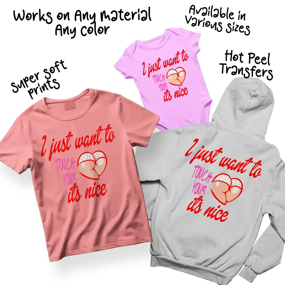 - 1 funny “I Just Want To Touch Your…” DTF transfer