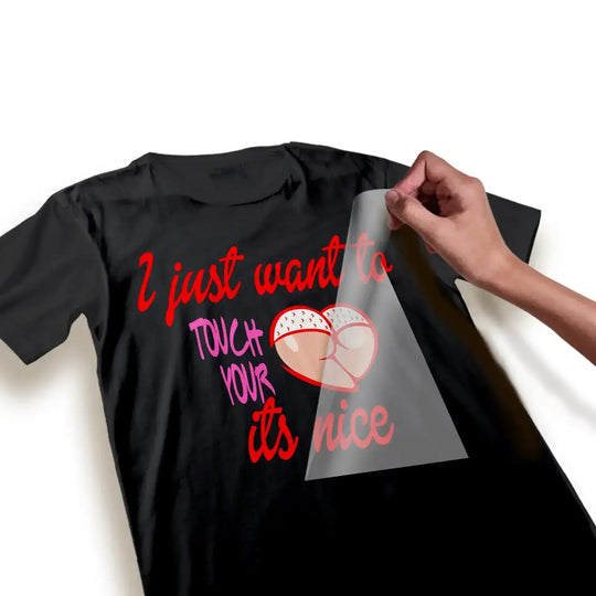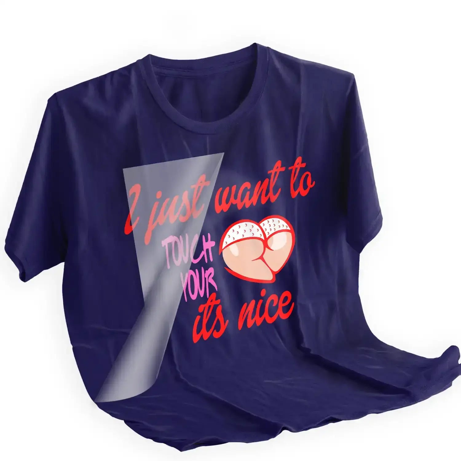 This risqué DTF transfer ready to press leaves just enough to the imagination—“I Just Want To Touch Your…” is the perfect design for teasing tees that make people do a double-take!