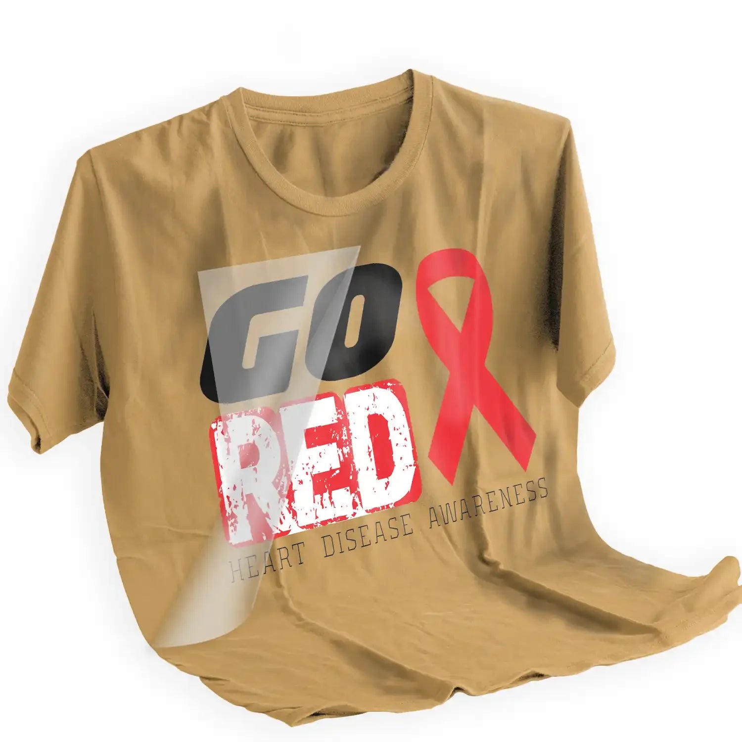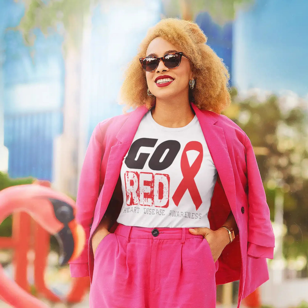 - Campaign-branded custom DTF transfer with official Go Red typography and movement graphics