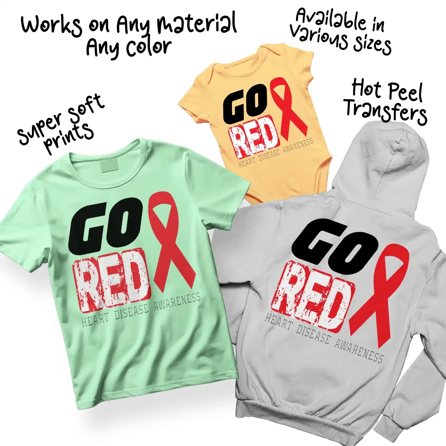 - Premium DTF transfers with Go Red design