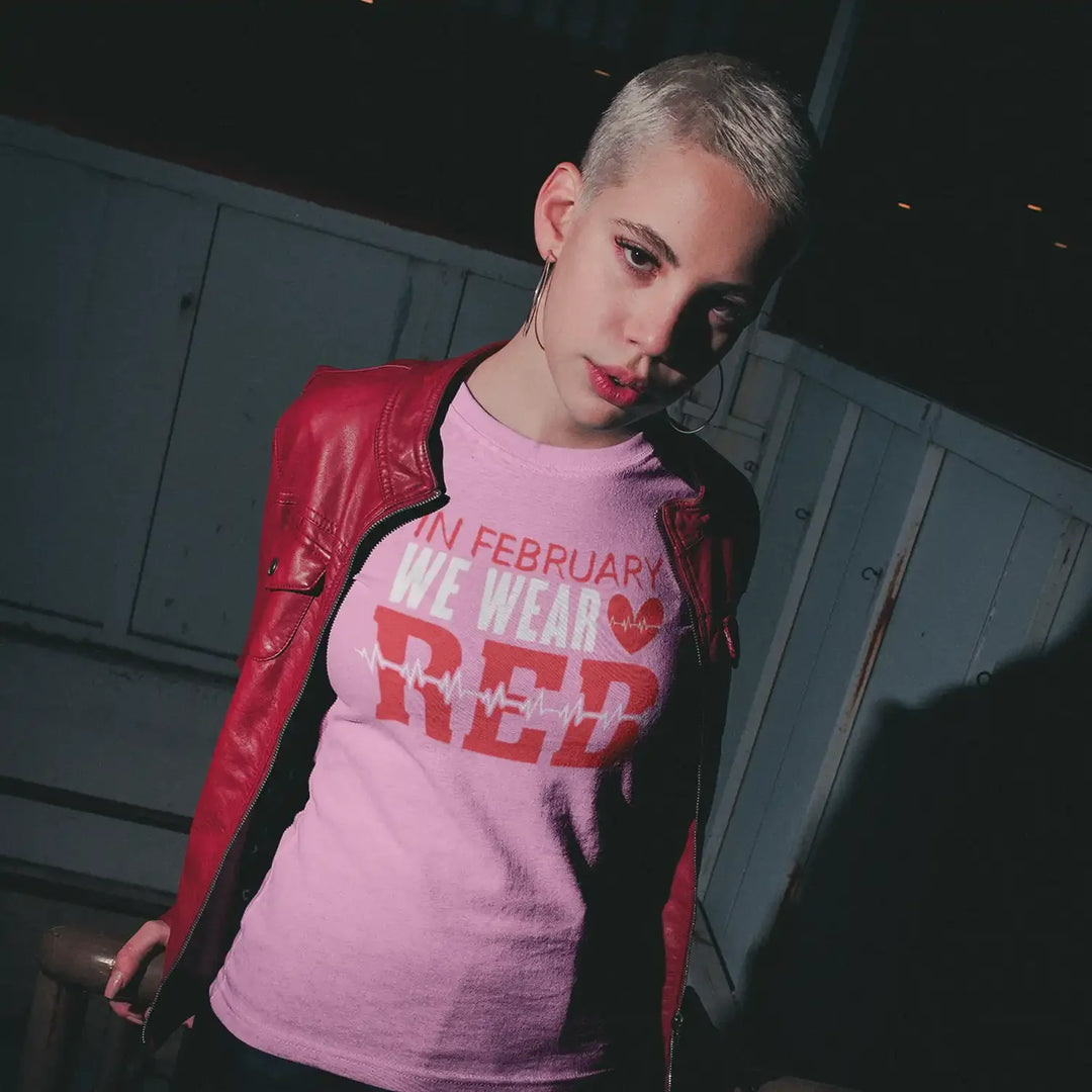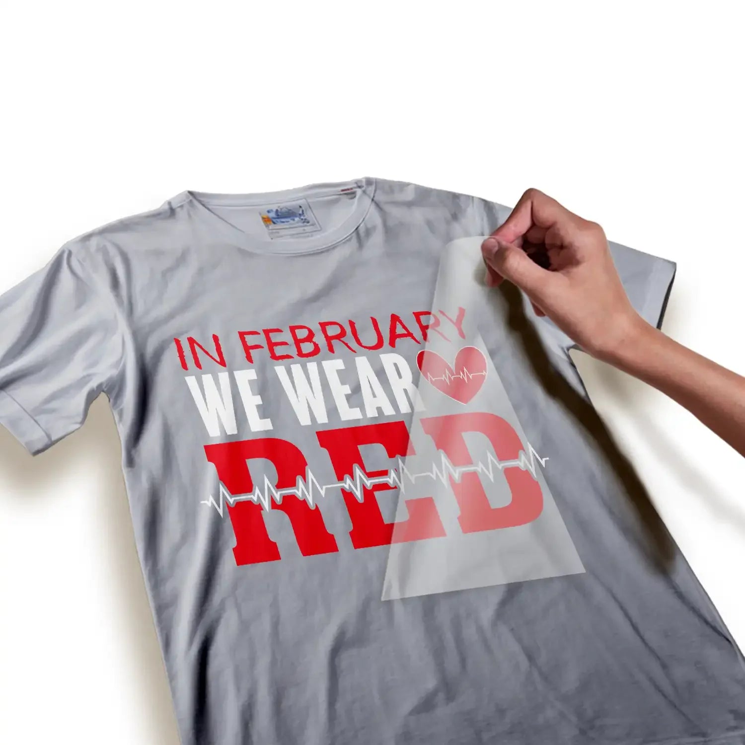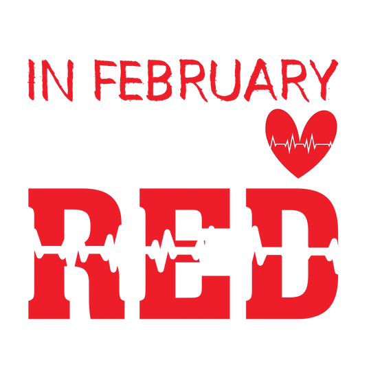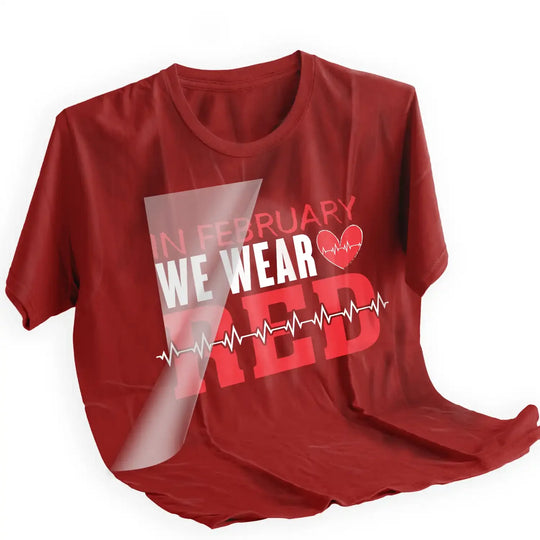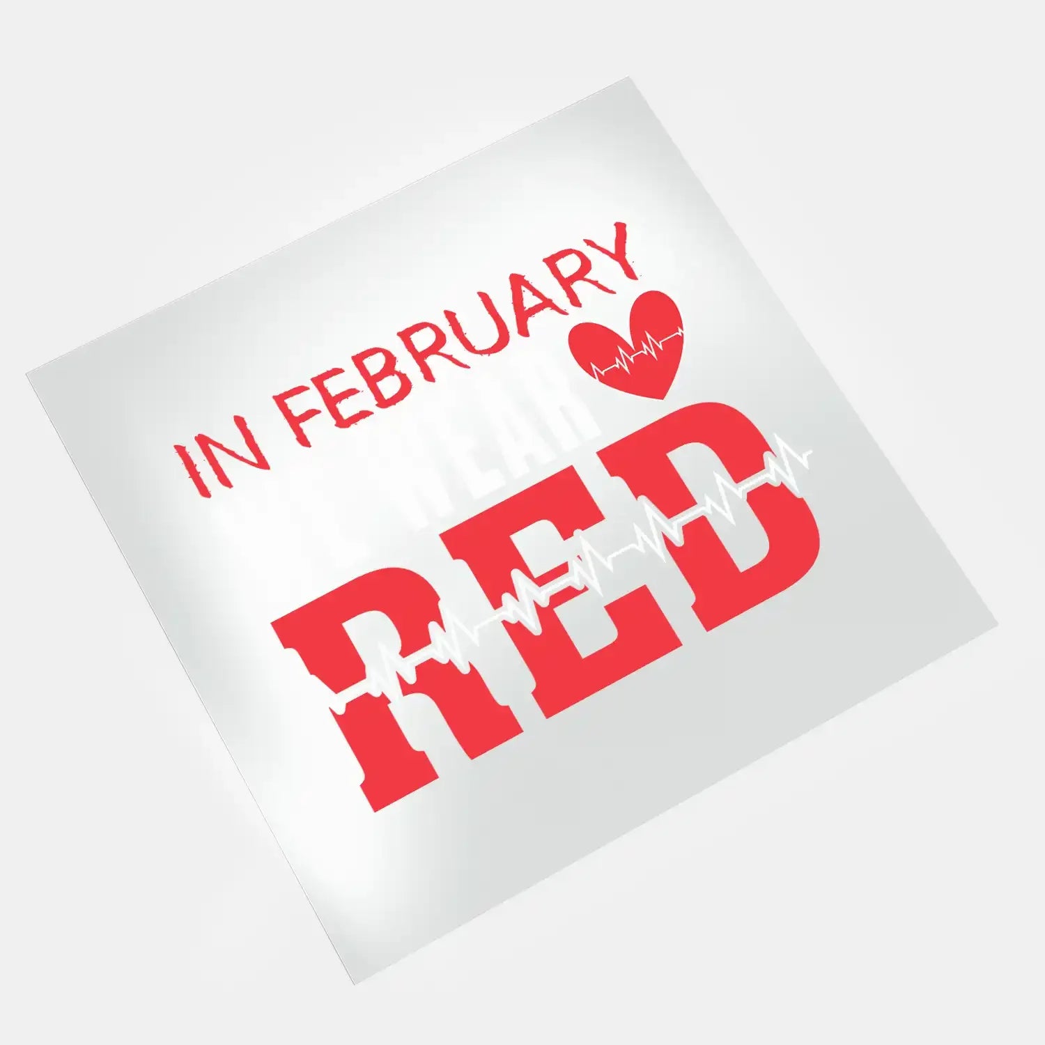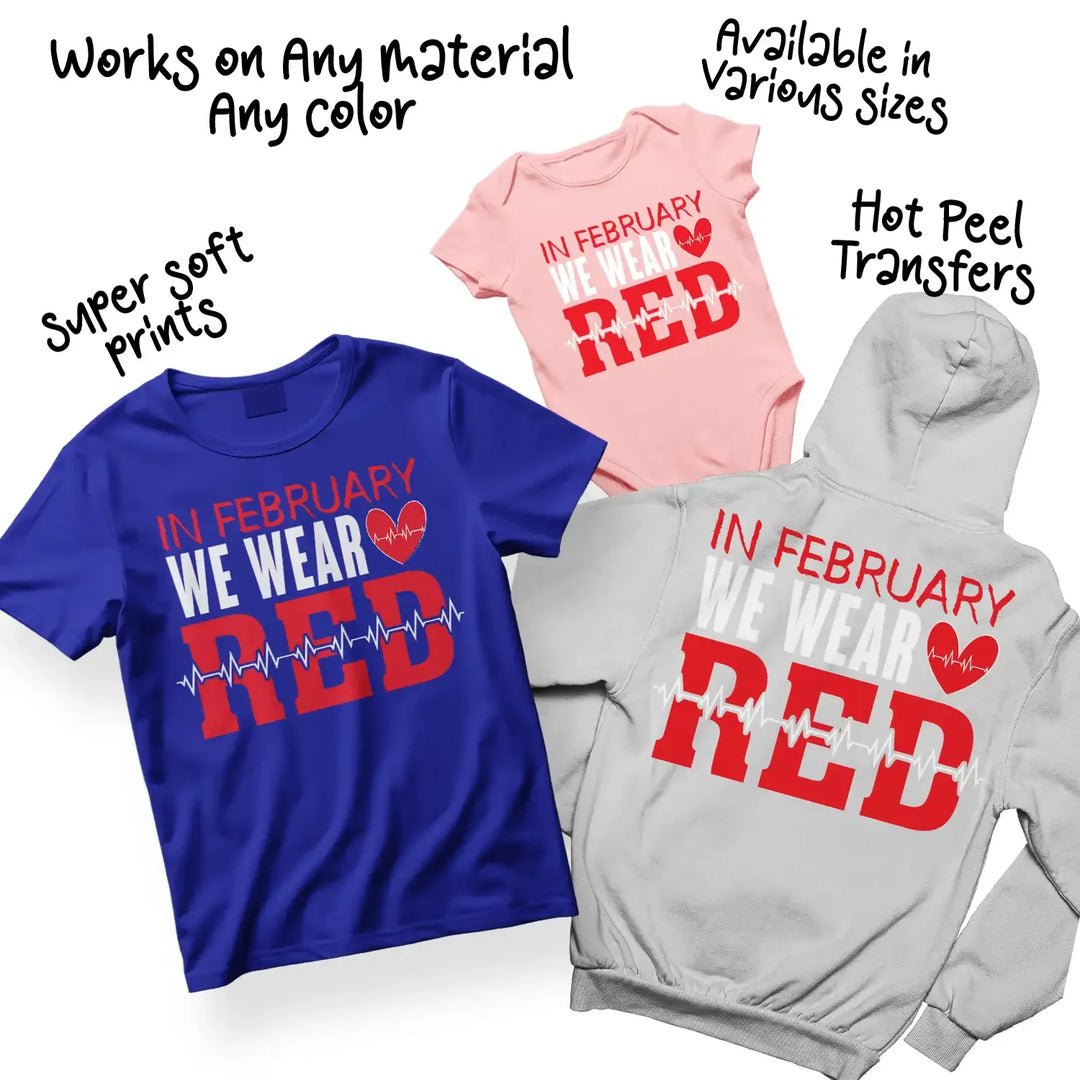 - Premium DTF transfer for t-shirt with enhanced "In February We Wear Red" design