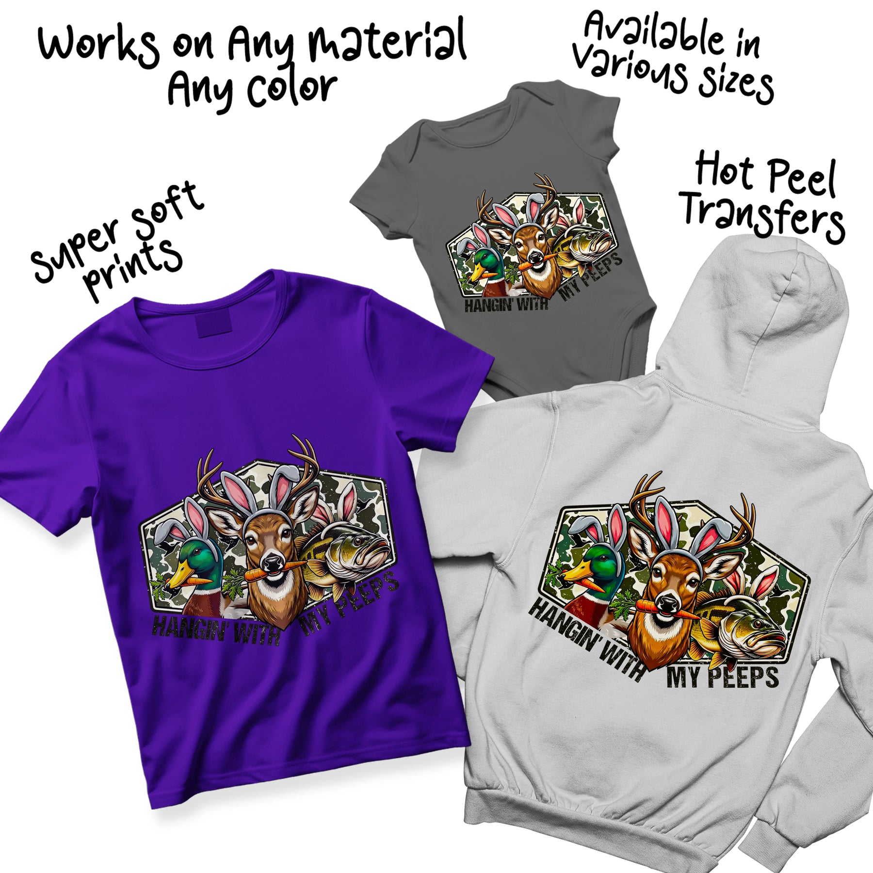 Easter DTF Transfer - Hangin' With My Peeps Hunting Animals Ready to Press