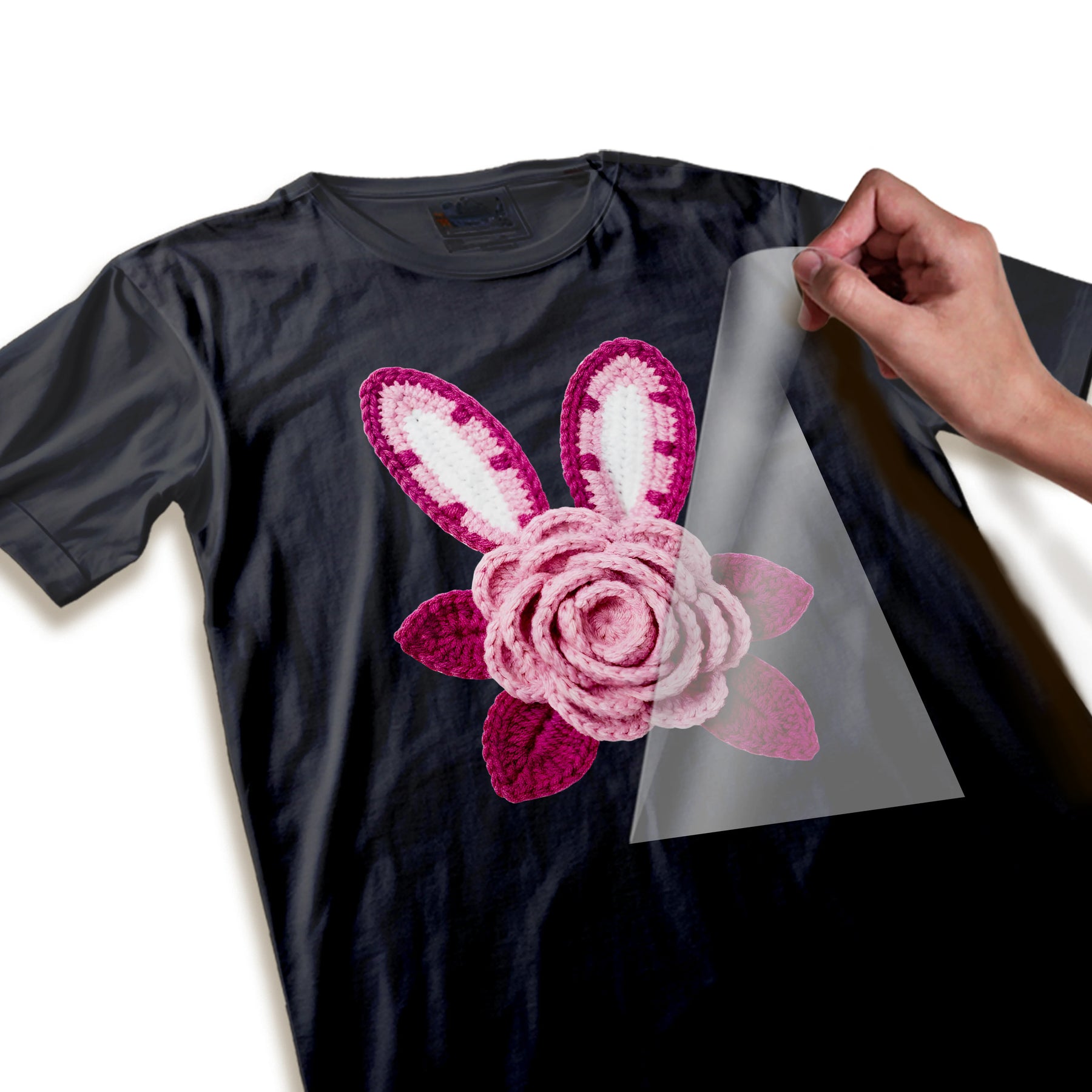 Easter DTF Transfer - Crochet Pink Rose with Bunny Ears Ready to Press