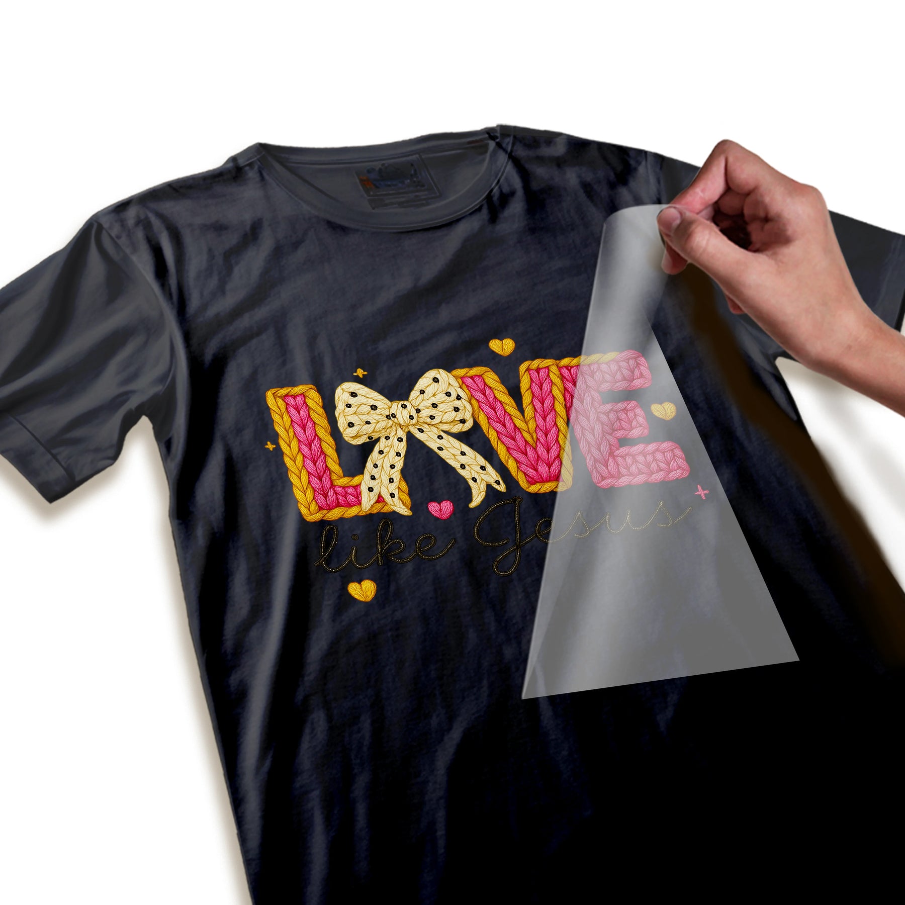 Valentines Faith DTF Transfer - Love Like Jesus Knitted Text Ready To Press
