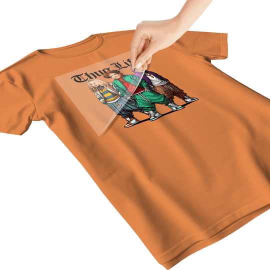 - PLACE – Position your DTF transfer on the garment with the design side DOWN (colored side touching fabric).