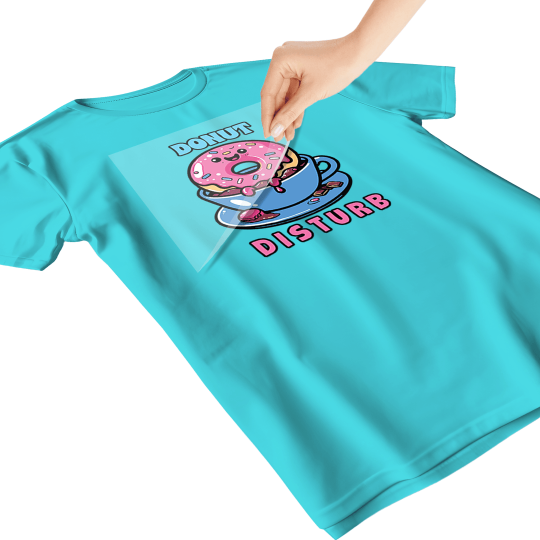 - PLACE – Position your DTF transfer on the garment with the design side DOWN (colored side touching fabric).