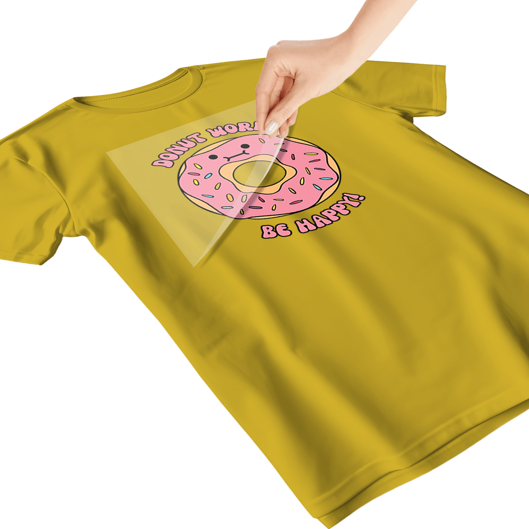 - PLACE – Position your DTF transfer on the garment with the design side DOWN (colored side touching fabric).