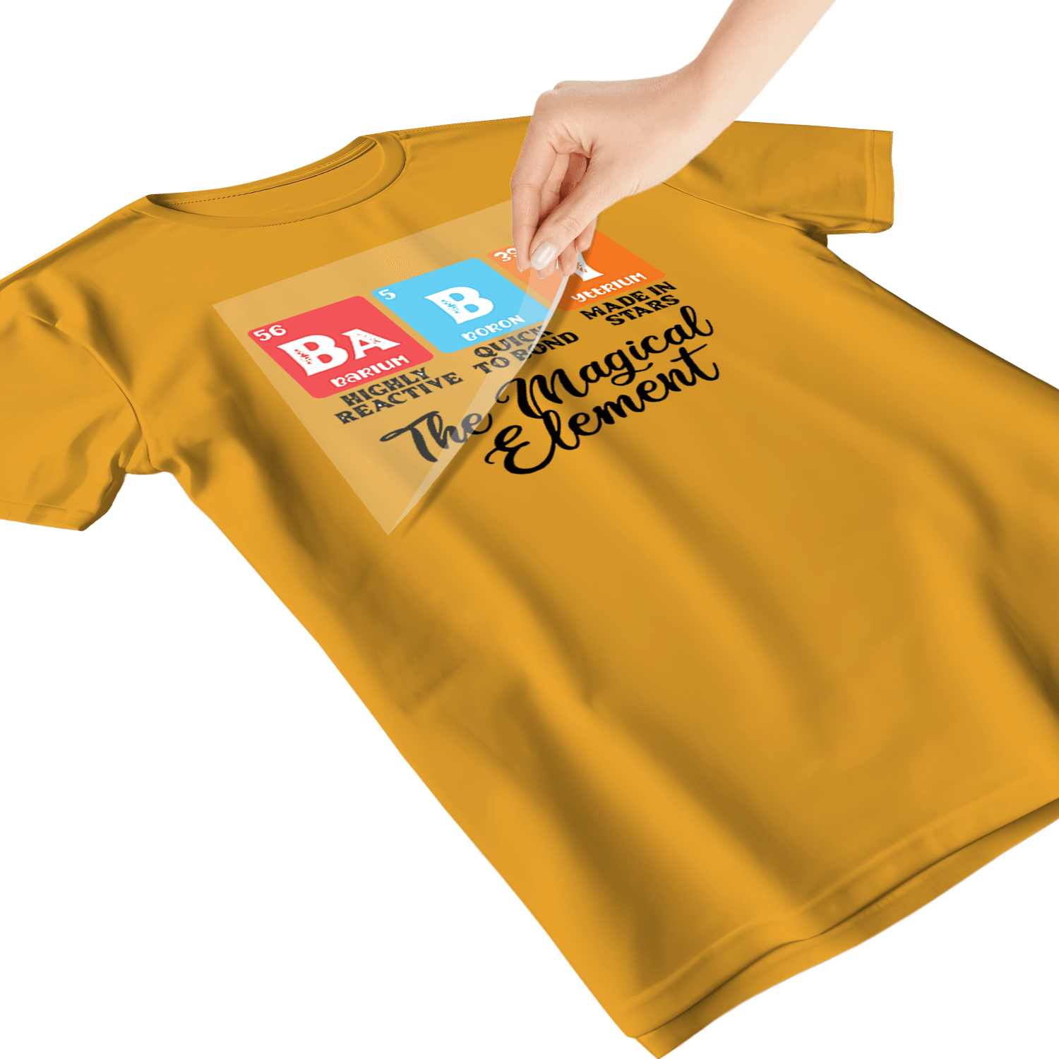 - PLACE – Position your DTF transfer on the garment with the design side DOWN (colored side touching fabric).