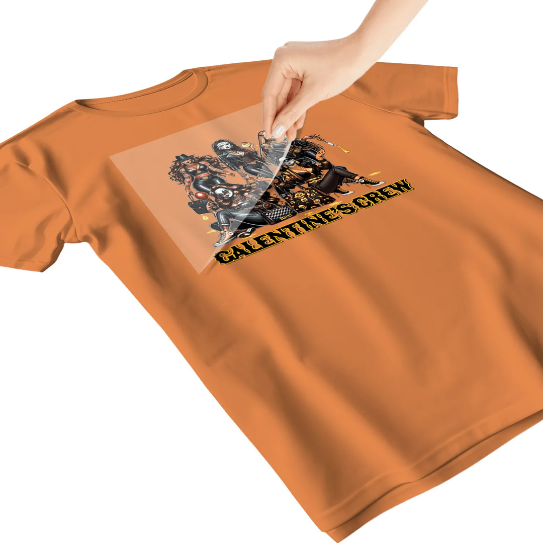 - PLACE – Position your DTF transfer on the garment with the design side DOWN (colored side touching fabric).