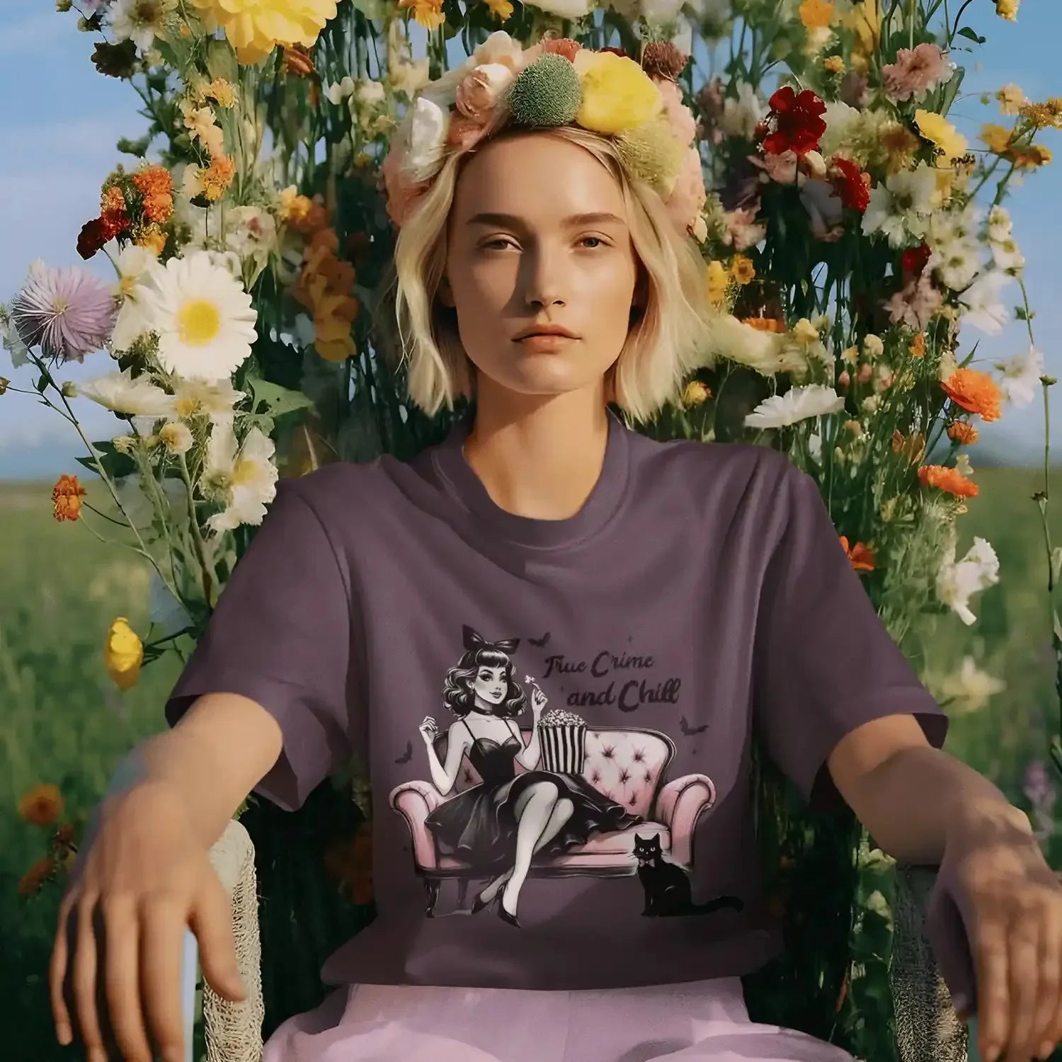 Gothic Pink Halloween: True Crime And Chill - DTF Transfer - Direct-to-Film