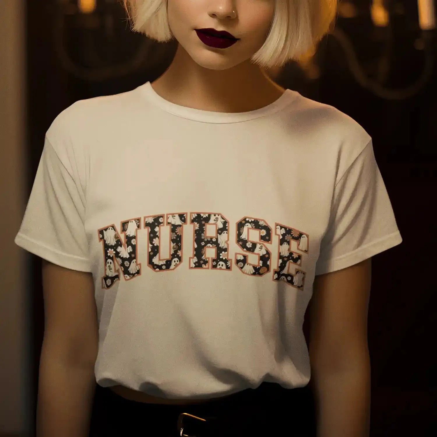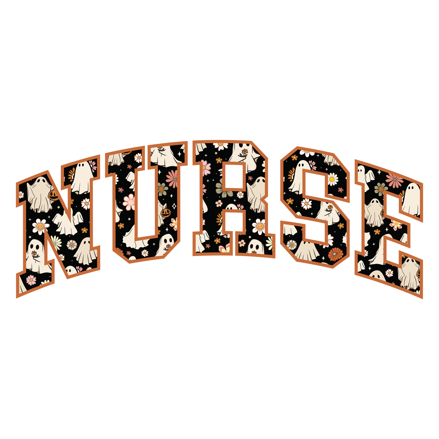 Halloween Nurse: Floral Ghost Nurse - DTF Transfer - Direct-to-Film