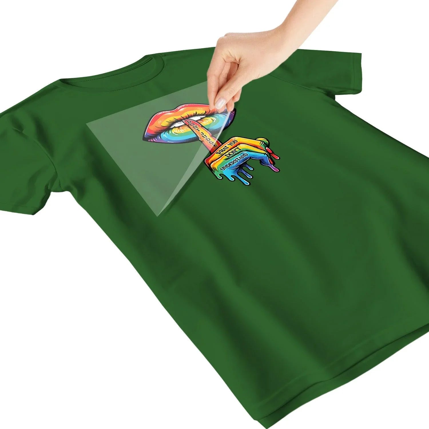 - PLACE – Position your DTF transfer on the garment with the design side DOWN (colored side touching fabric).