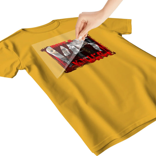 - PLACE – Position your DTF transfer on the garment with the design side DOWN (colored side touching fabric).