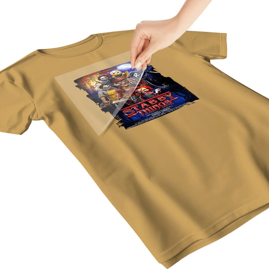 - PLACE – Position your DTF transfer on the garment with the design side DOWN (colored side touching fabric).