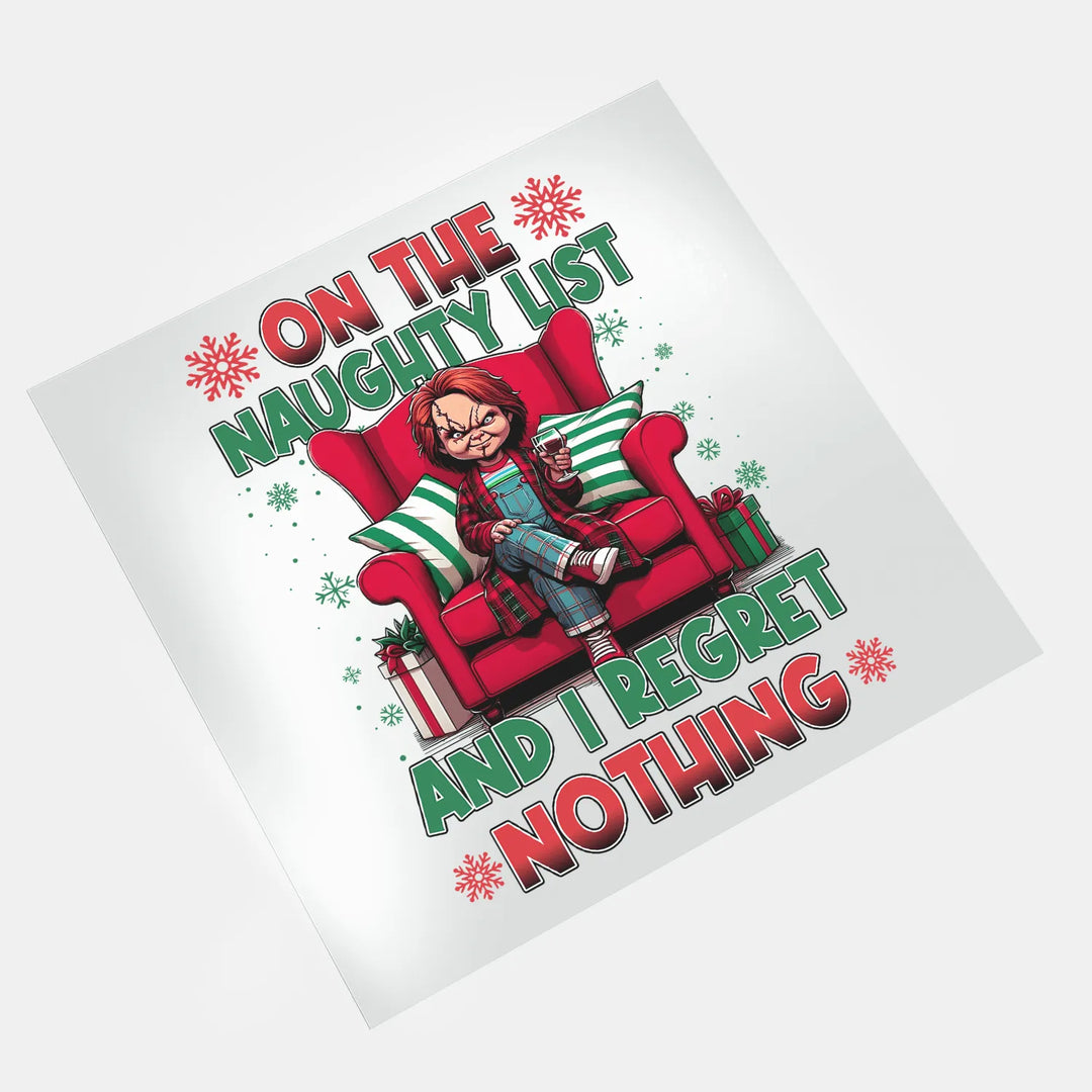On Naughty List And Regret Nothing - Chucky Regrets Nothing - DTF Transfer - Direct-to-Film
