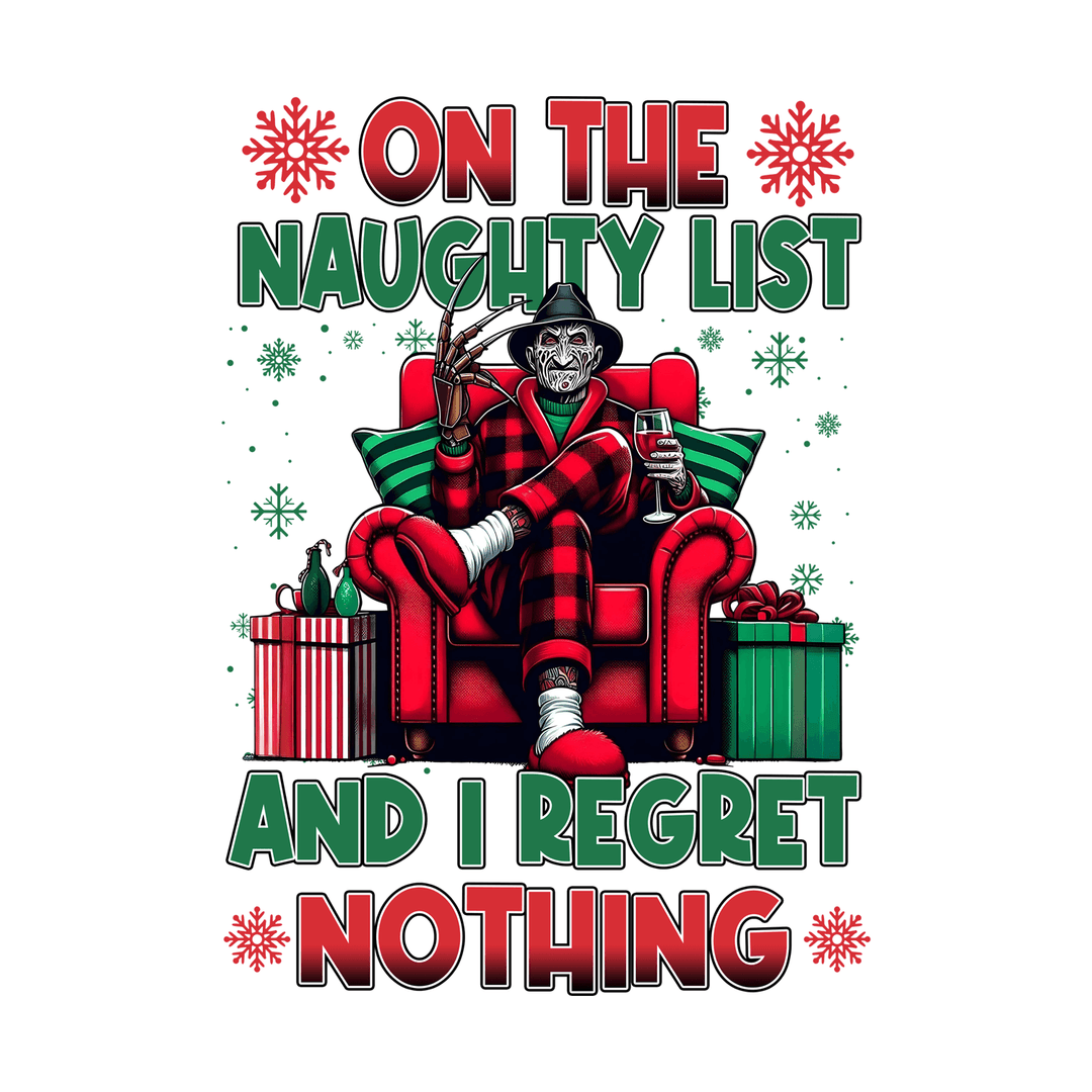 On Naughty List And Regret Nothing - Freddy Regrets Nothing - DTF Transfer - Direct-to-Film