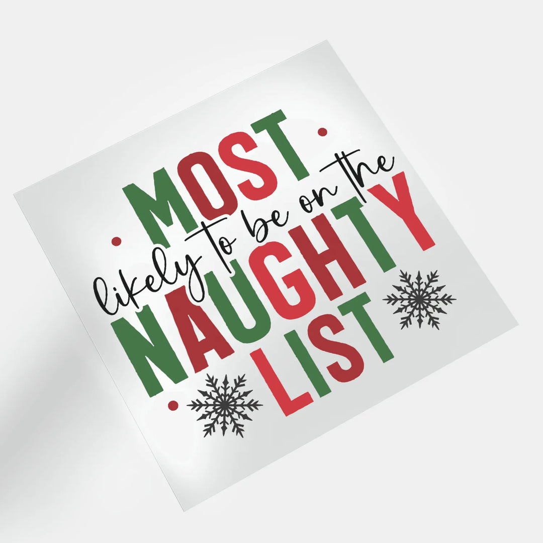 On Naughty List And Regret Nothing - Most Likely To Be On The Naught List - DTF Transfer - Direct-to-Film