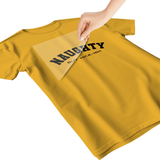 - PLACE – Position your DTF transfer on the garment with the design side DOWN (colored side touching fabric).