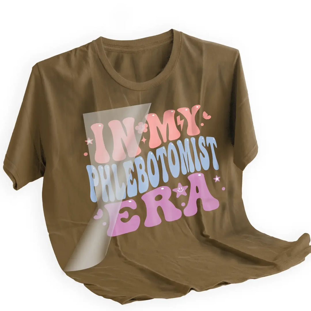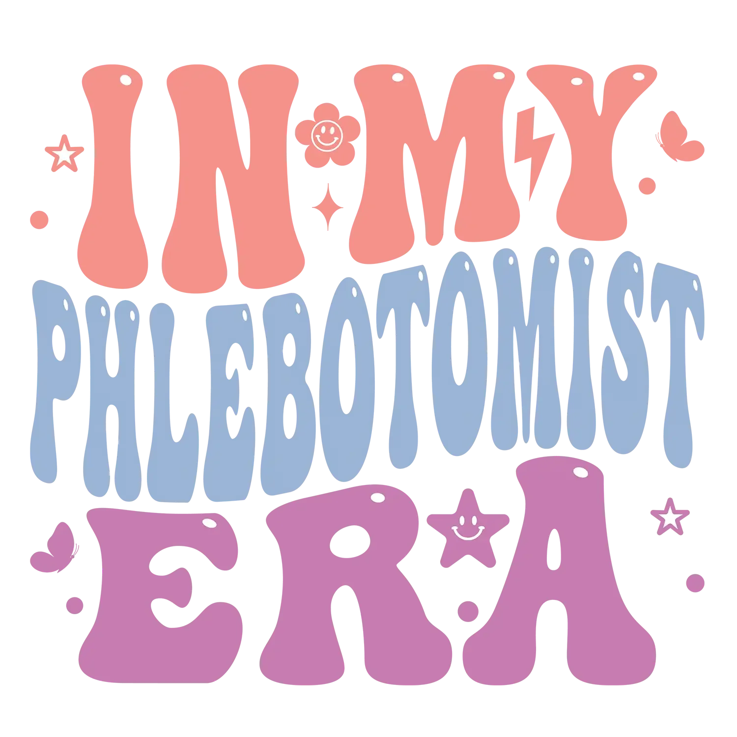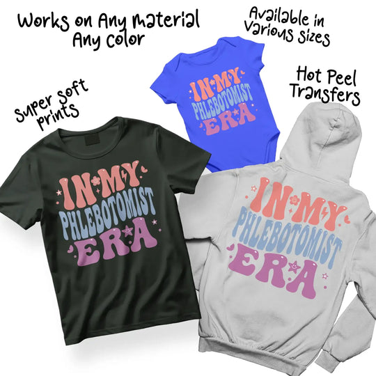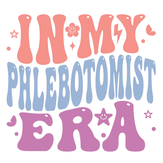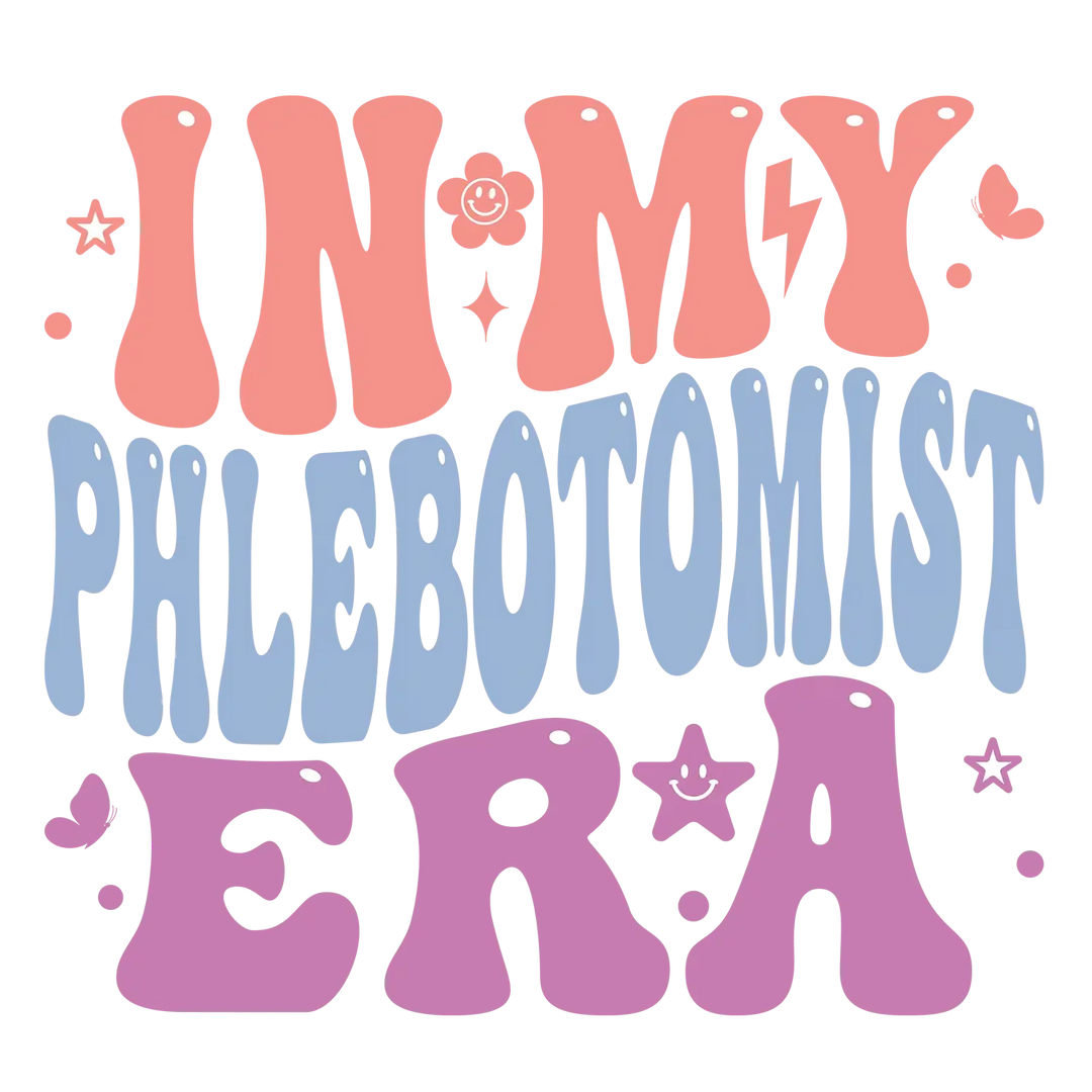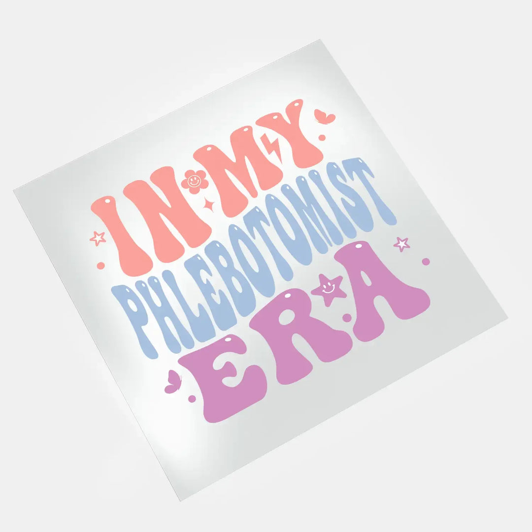 - Premium DTF transfers with "In My Phlebotomist Era" design