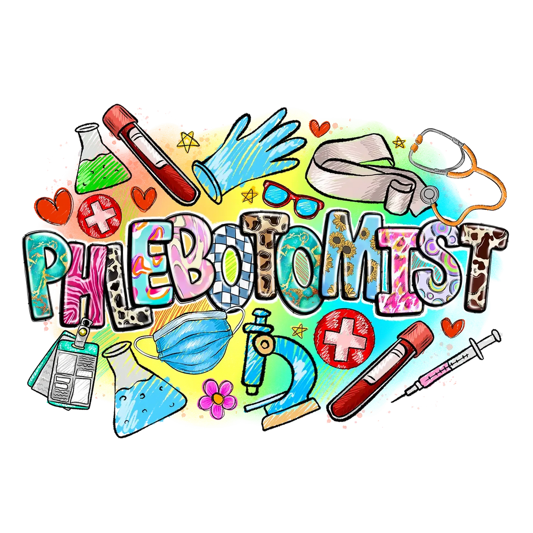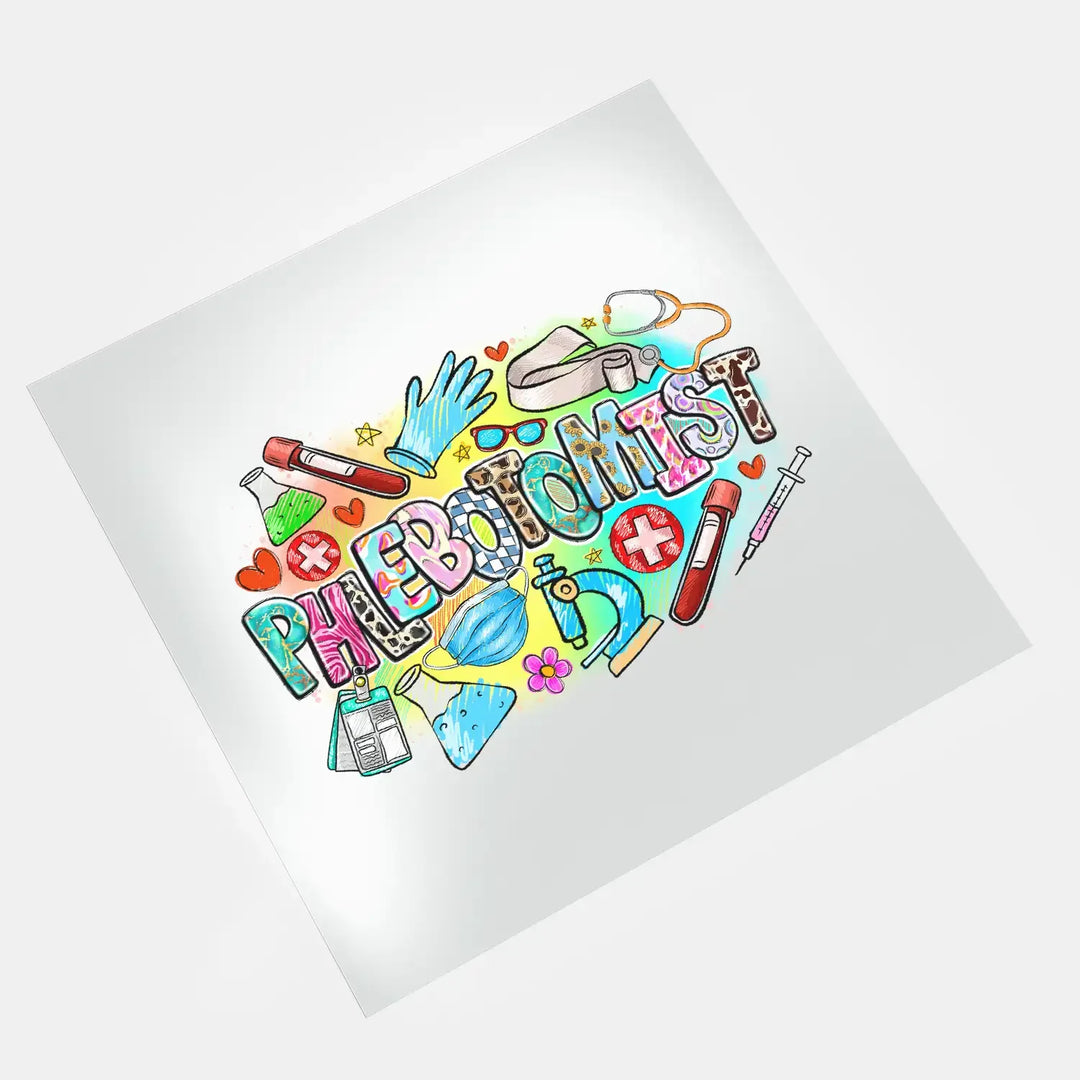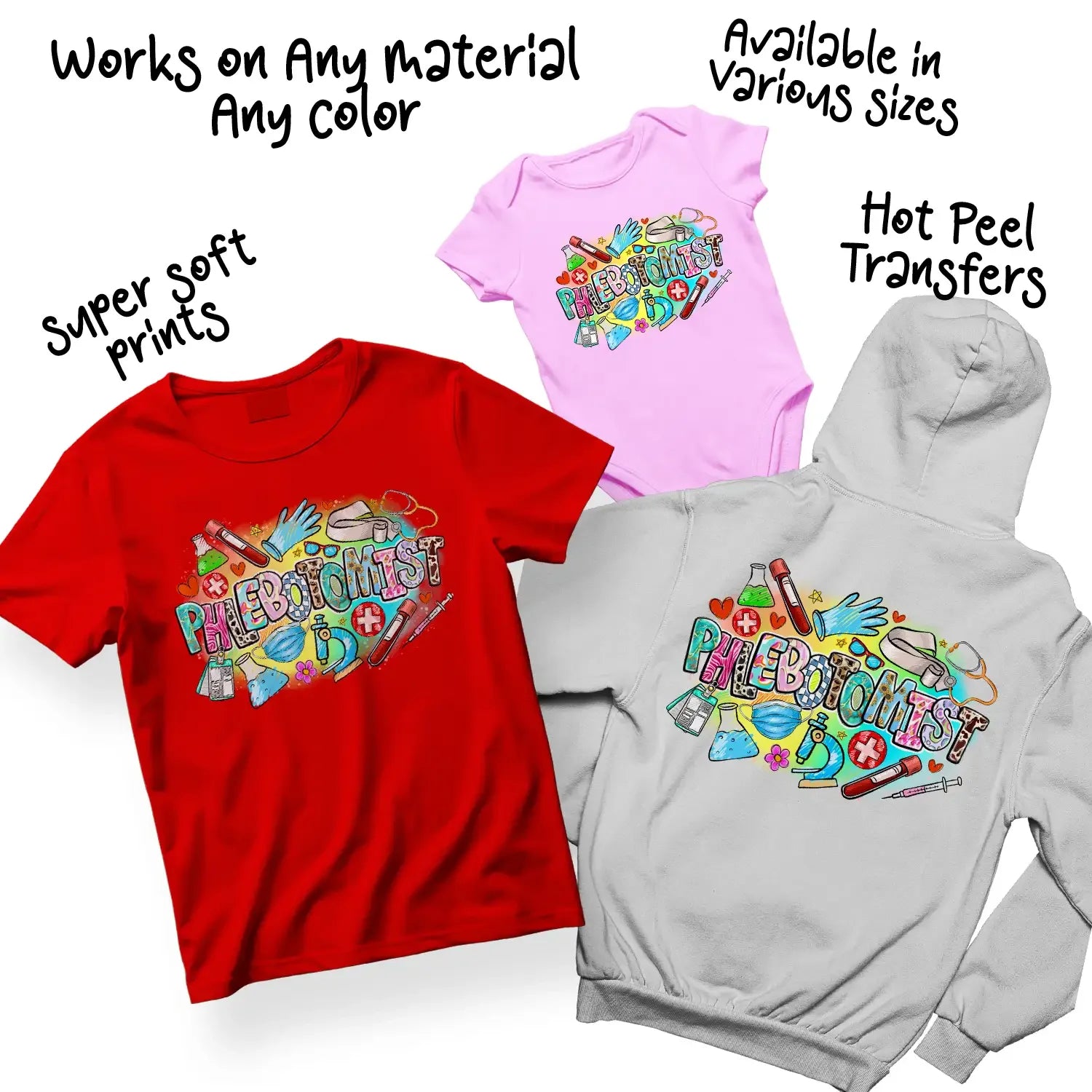 - Premium ready to press DTF transfers with classic Phlebotomist design