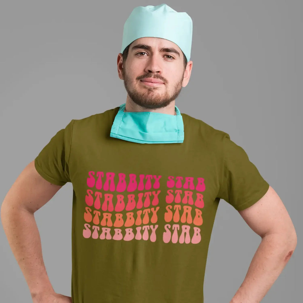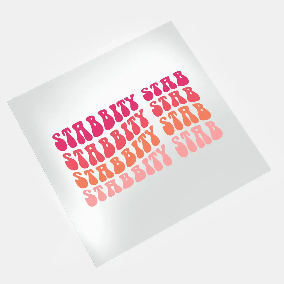 Share workplace humor with our premium "Stabbity Stab" ready to press DTF transfers. Perfect for phlebotomists with wit, healthcare workers who appreciate cute humor, or lightening the mood in medical settings. Order your Stabbity Stab DTF transfer today!