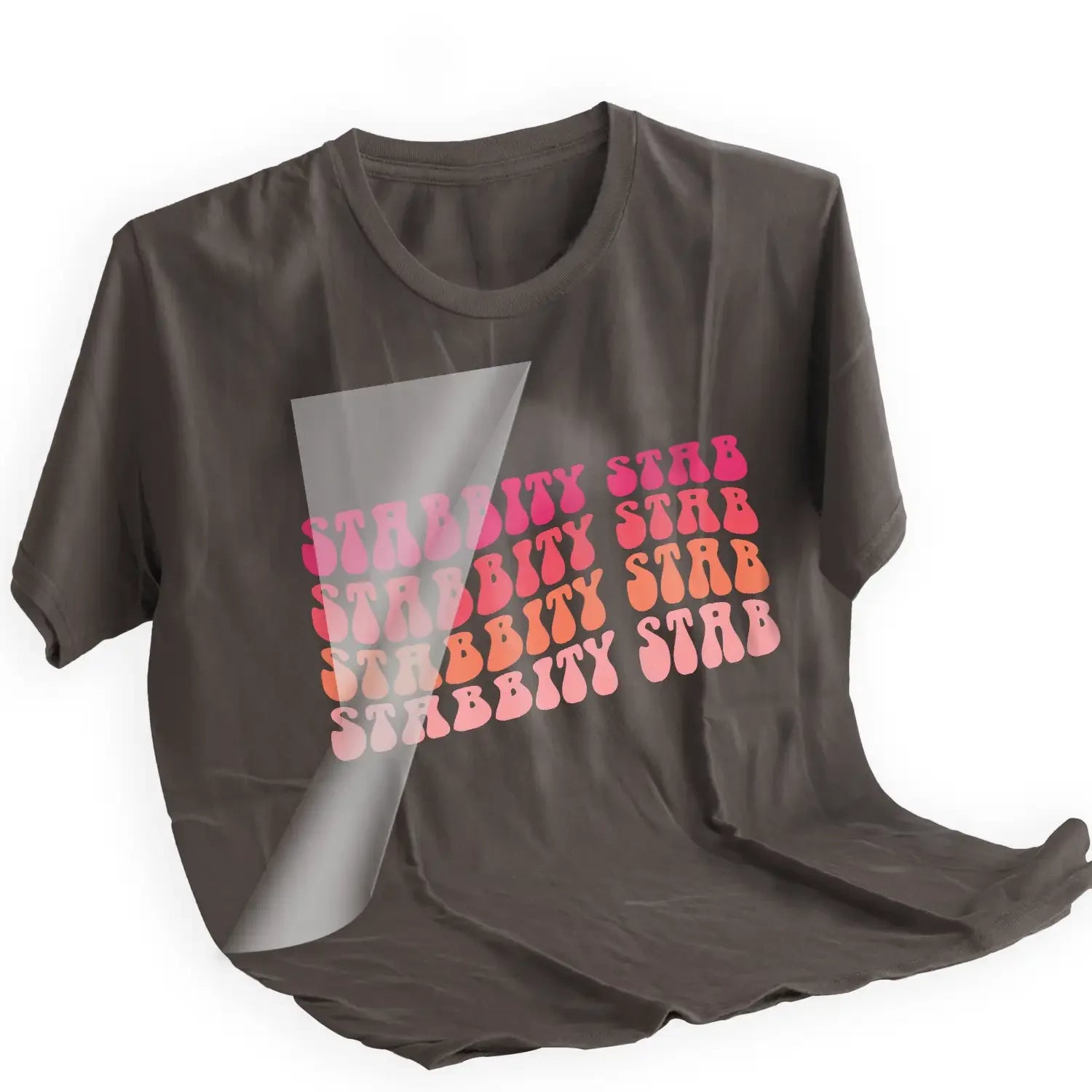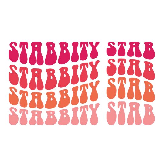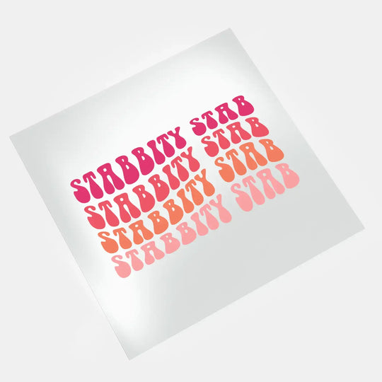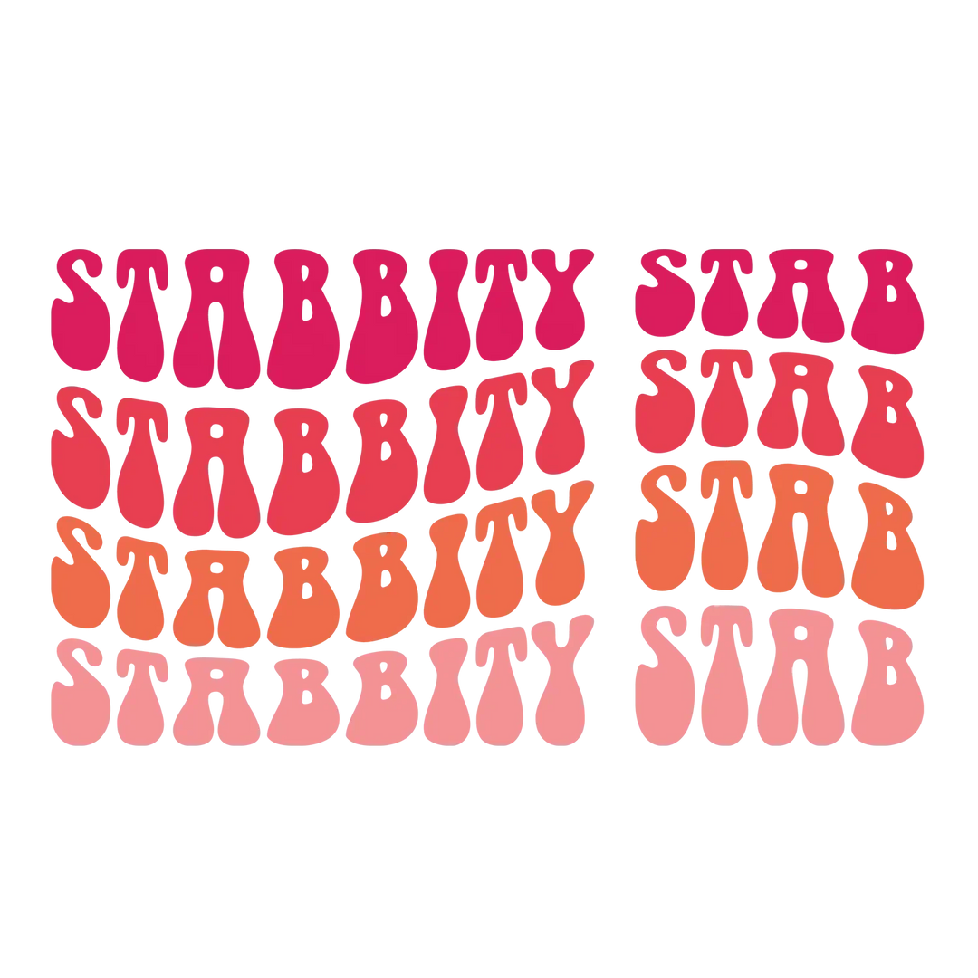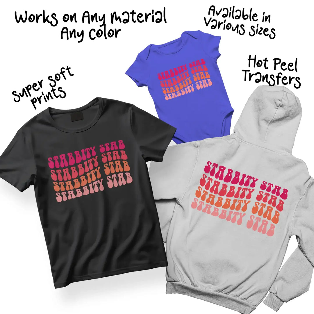- Premium ready to press DTF transfers with Stabbity Stab design