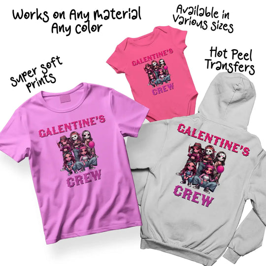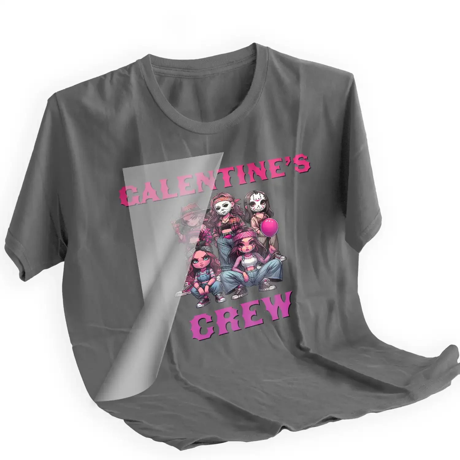 Expand your friendship collection with our vibrant pre made DTF transfers featuring an alternative "Galentine's Crew" design with fresh styling. This cheerful DTF transfer sheets design offers a new take on crew celebration, perfect for creating variety in your Galentine's Day wardrobe or sharing different looks with your amazing friend group.