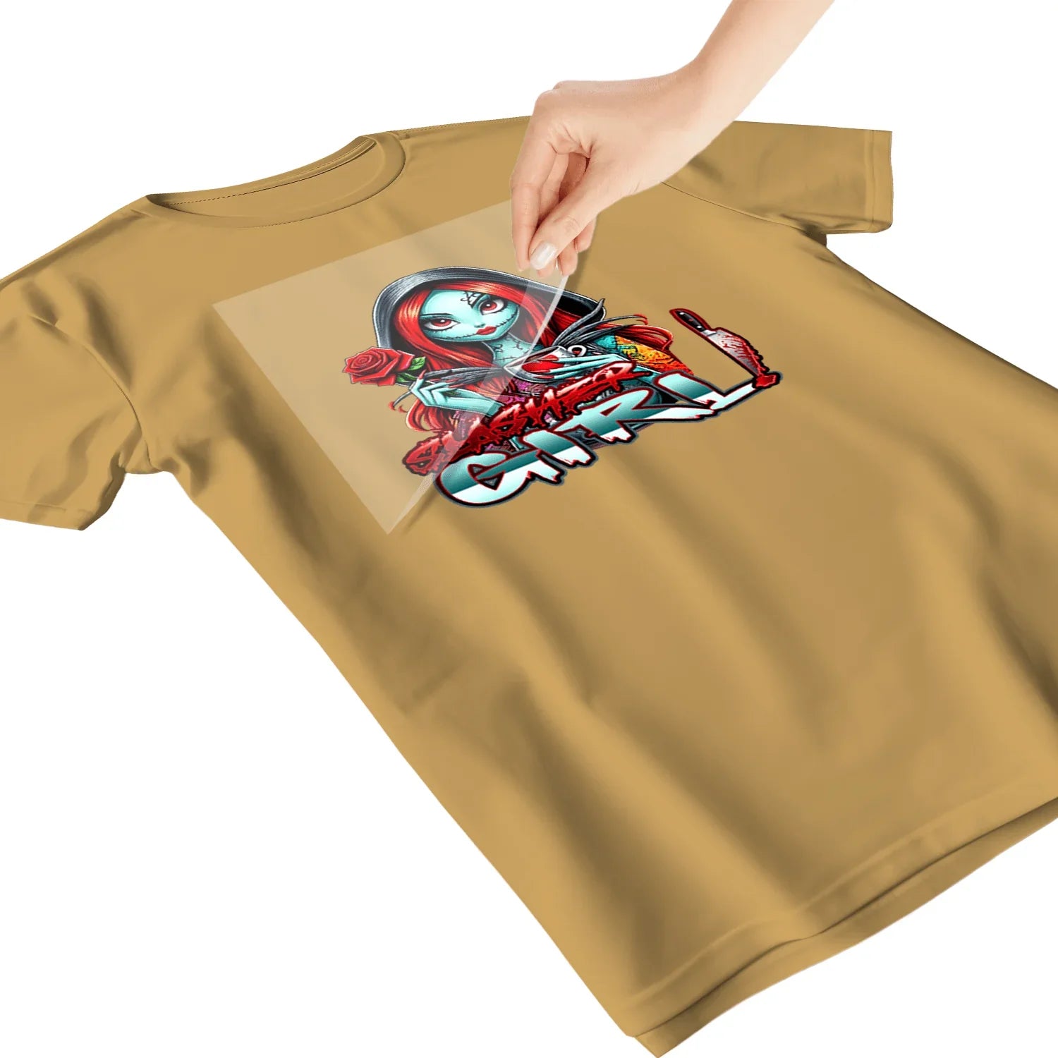 - PLACE – Position your DTF transfer on the garment with the design side DOWN (colored side touching fabric).
