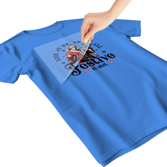 - PLACE – Position your DTF transfer on the garment with the design side DOWN (colored side touching fabric).