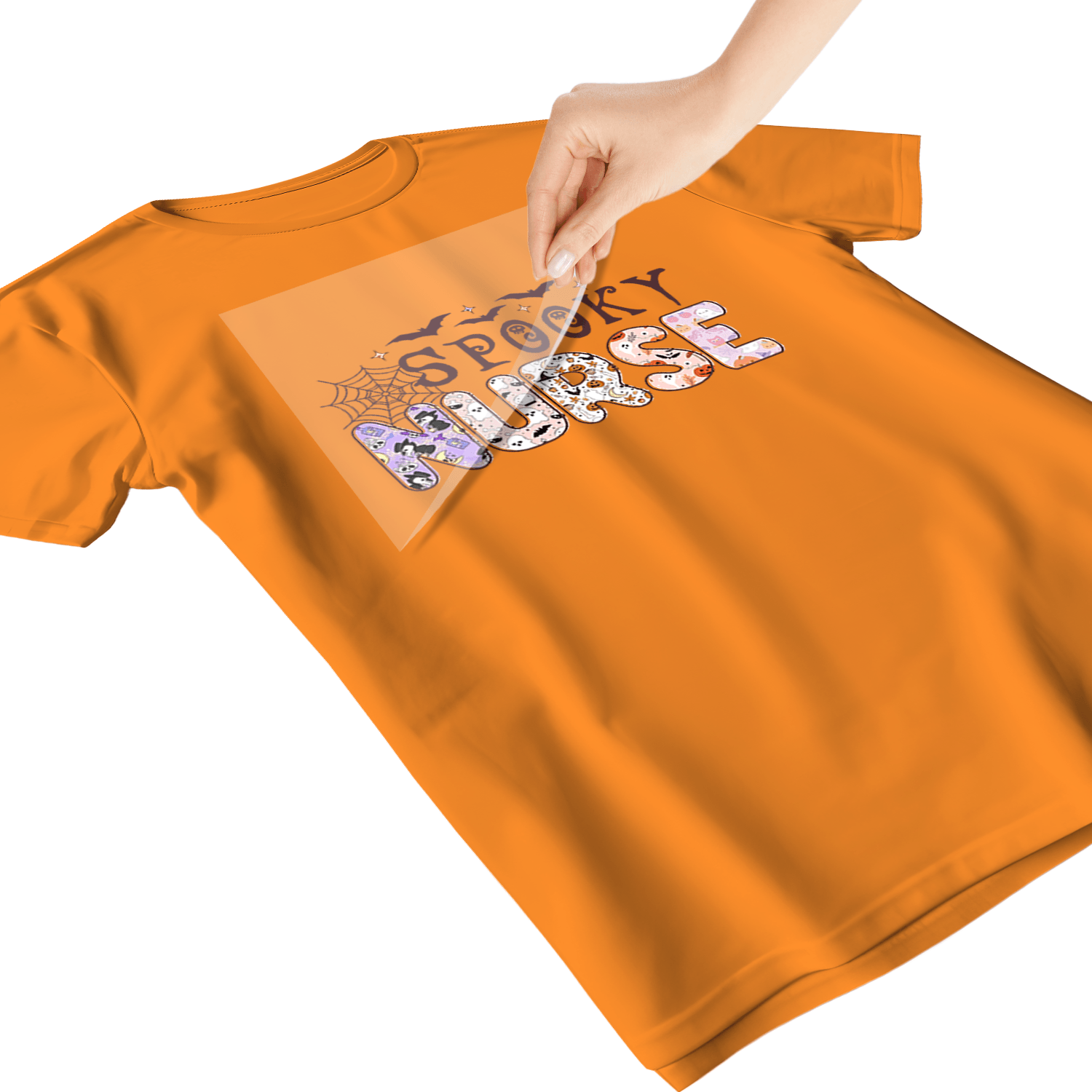 - PLACE – Position your DTF transfer on the garment with the design side DOWN (colored side touching fabric).