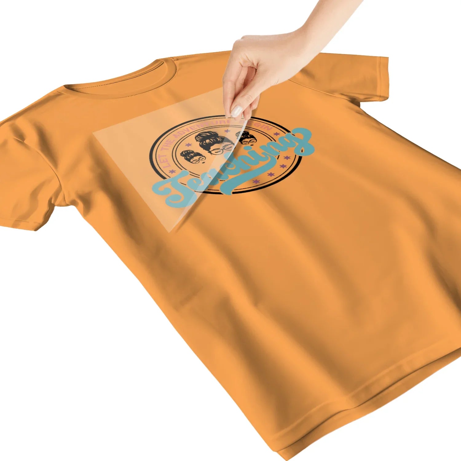 - PLACE – Position your DTF transfer on the garment with the design side DOWN (colored side touching fabric).