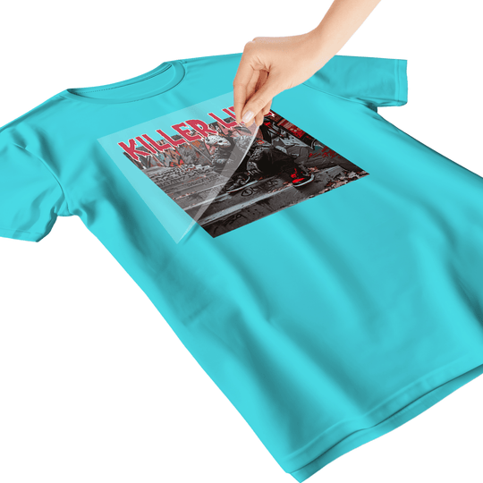 - PLACE – Position your DTF transfer on the garment with the design side DOWN (colored side touching fabric).