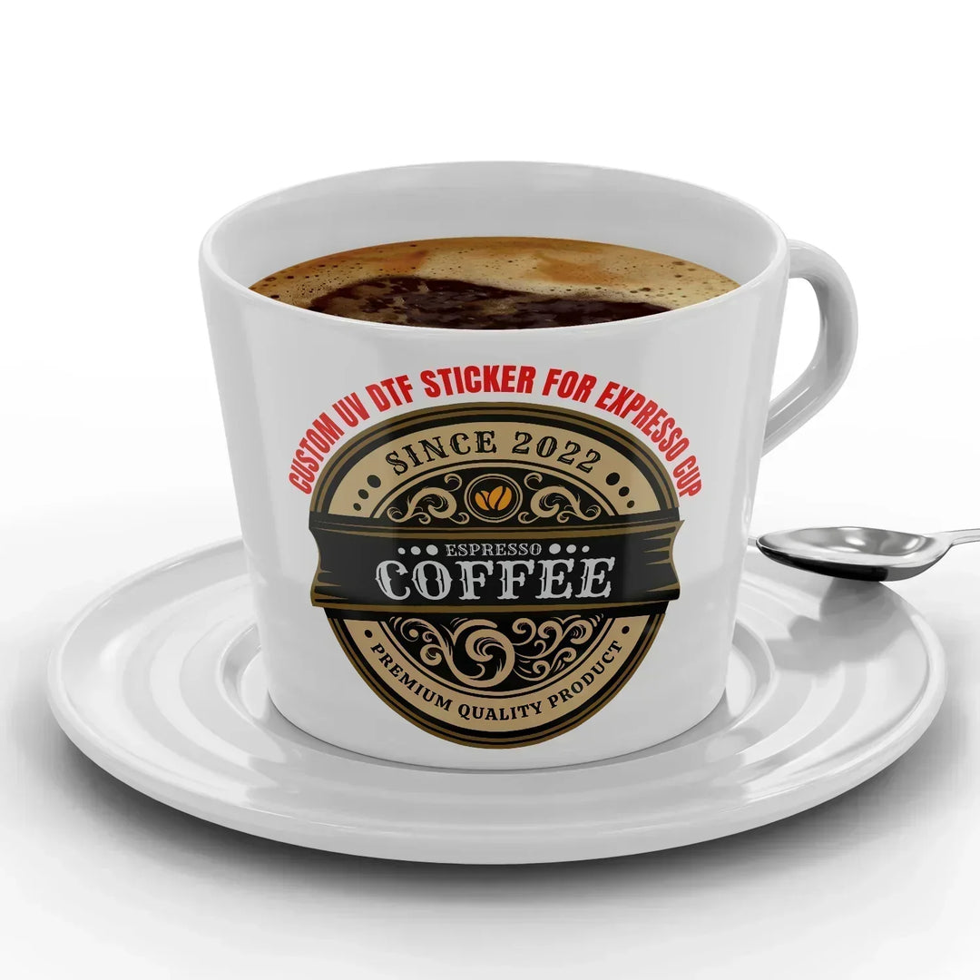 Custom UV DTF Stickers for Espresso Cup - Personalized Coffee Mug Decals - Waterproof